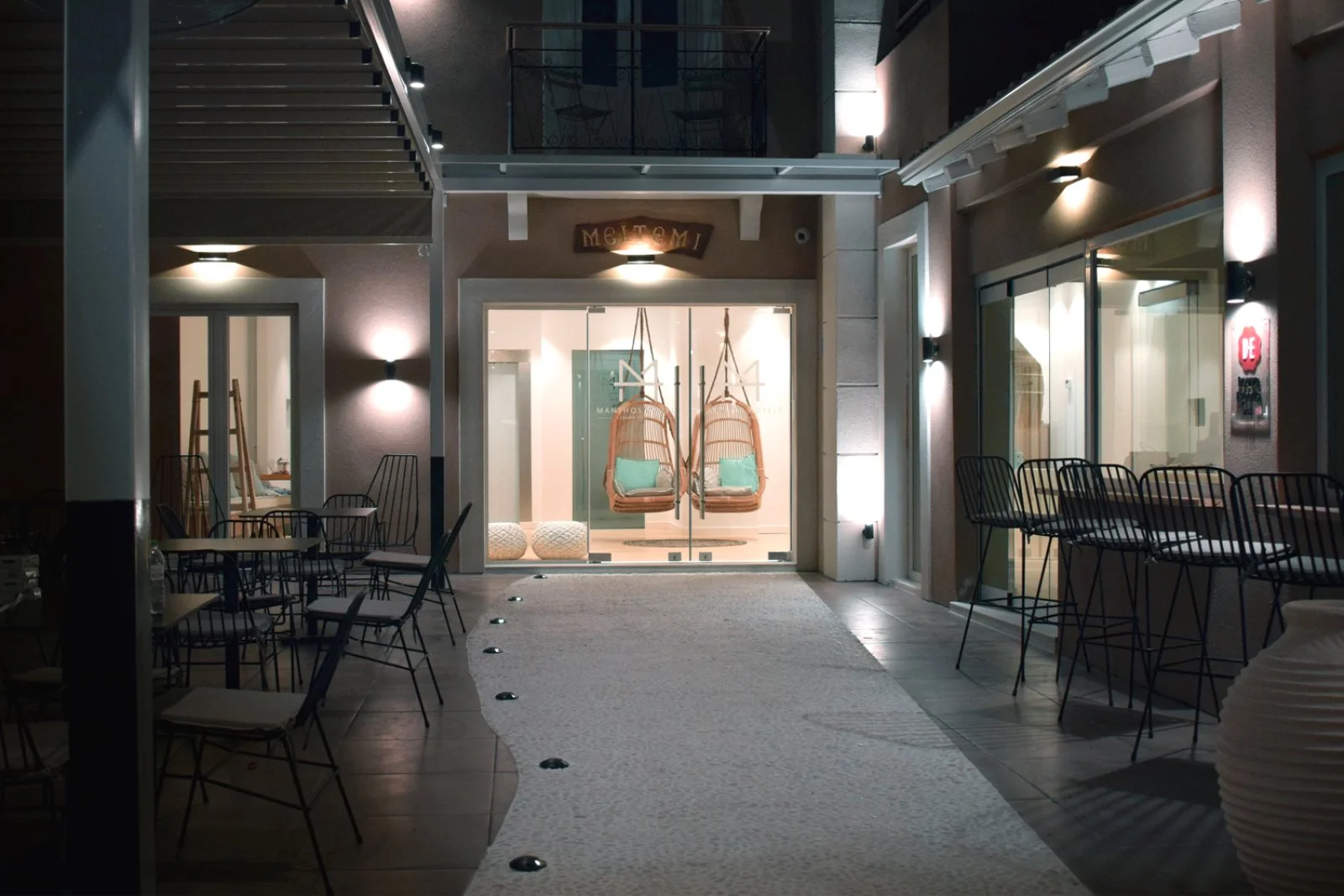 Sul lungomare di Skiathos città a 150 m dal porto e 1,5 km dall’aeroporto. Fermata bus di linea a 50 m. Edificio a 4 piani dalle linee architettoniche classiche, totalmente rinnovato di recente. Arredi moderni con influenze vintage-bohemien contraddistinguono sia gli ambienti comuni che le camere.