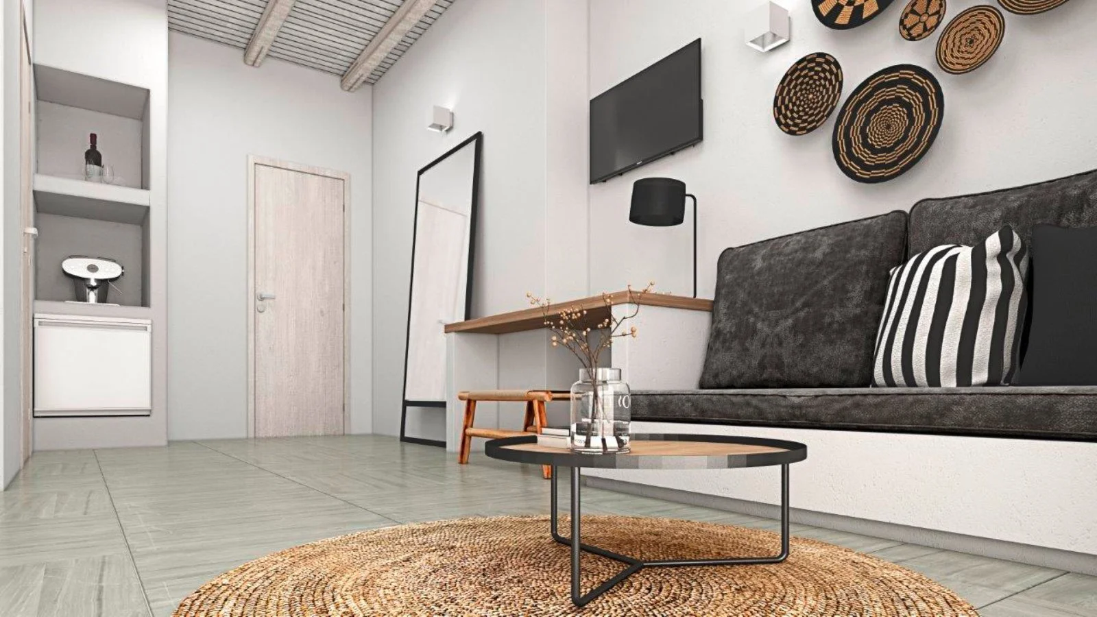 Platis Yalos, a 550 m dalla spiaggia, 4,5 km da Mykonos Town, 5 dall’aeroporto e 7 dal porto. Fermata dell’autobus a 300 m con collegamenti ogni mezz’ora circa per Mykonos Town.