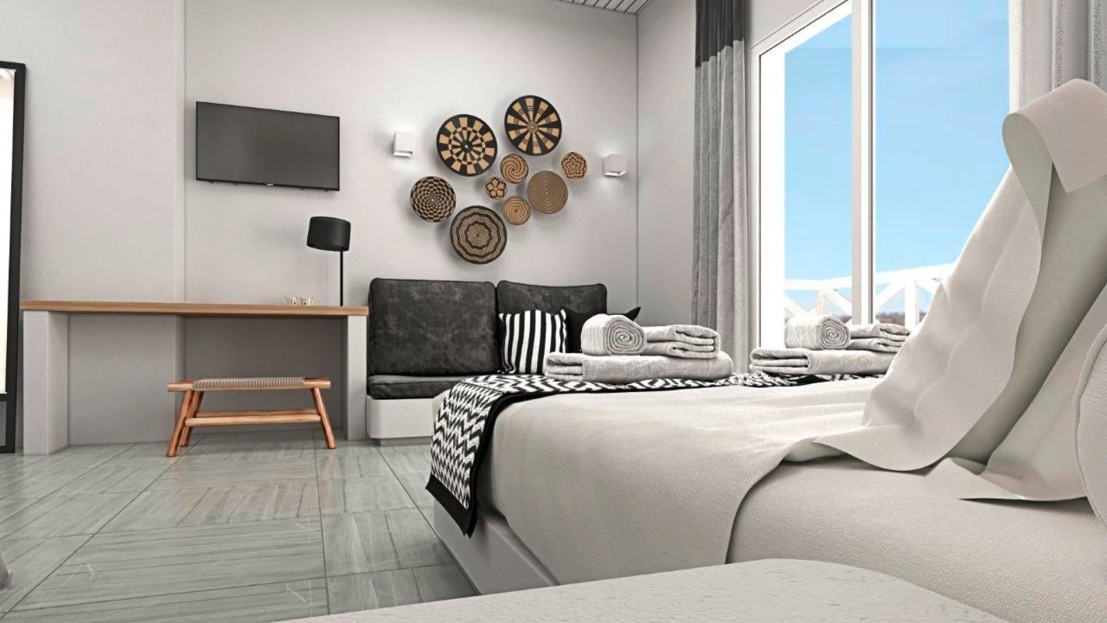 30 camere arredate in stile moderno e con gusto dotate di servizi privati, asciugacapelli, telefono, aria condizionata, TV satellitare, minifrigo, set di accappatoio e ciabattine, cassetta di sicurezza, connessione Wi-Fi gratuita e terrazza o balcone. Le doppie standard surrounding view (15 m²) si trovano in posizione meno privilegiata e con vista sulla parte interna dell’hotel. Sono disponibili, con supplemento, camere vista montagna (22 m²) che possono ospitare fino a 3 persone.
