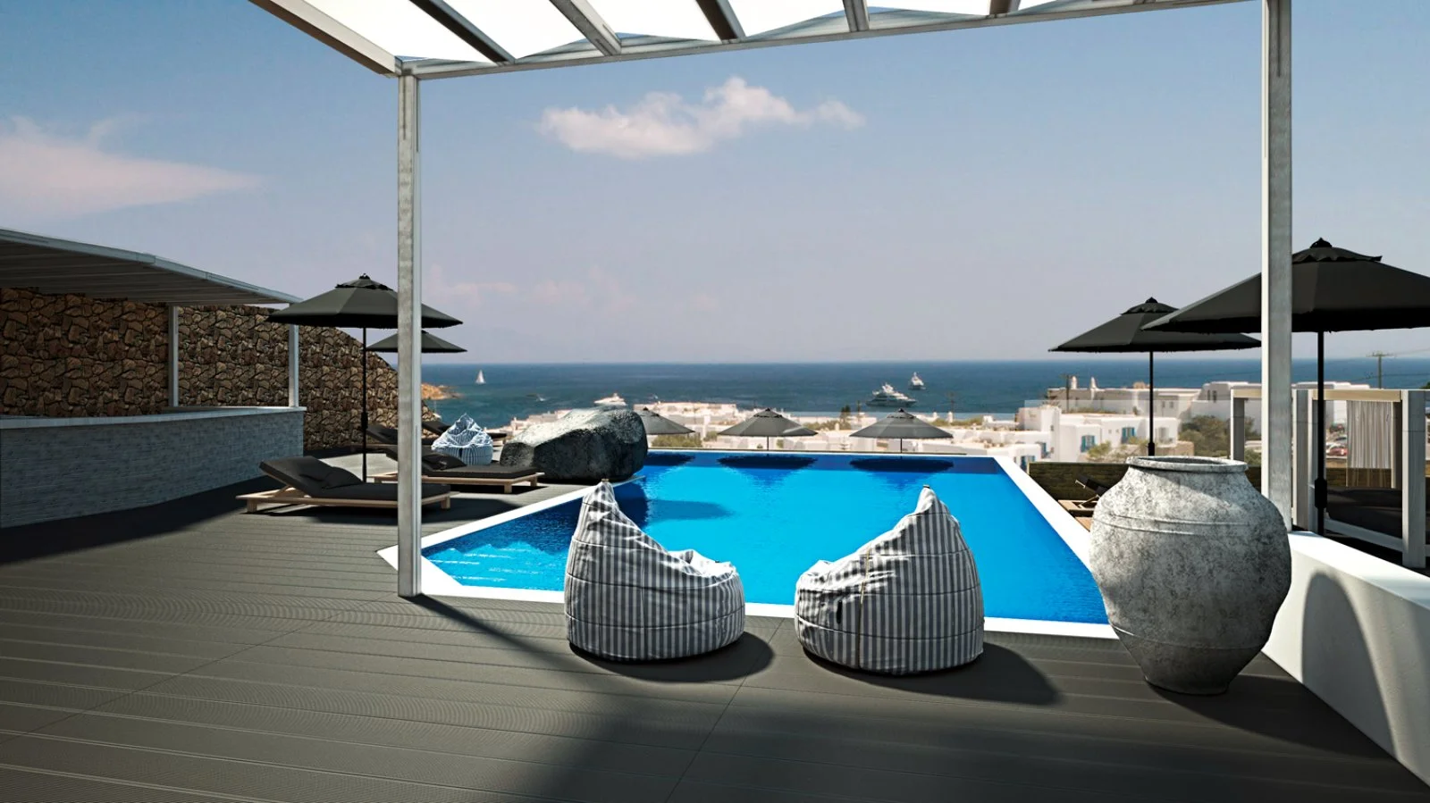 Piccola struttura in stile boutique hotel ubicata in posizione privilegiata, con incantevole vista sulla baia sottostante. Sottoposta a recente restyling, vanta un'estetica moderna, combinata con gli elementi architettonici tradizionali delle isole Cicladi che si fondono perfettamente con l'ambiente naturale che lo circonda. La sua bella posizione panoramica, i suoi servizi di qualità e il personale ospitale e qualificato sono gli ingredienti per un soggiorno rilassante e confortevole in una delle più interessanti e strategiche spiagge dell’isola.