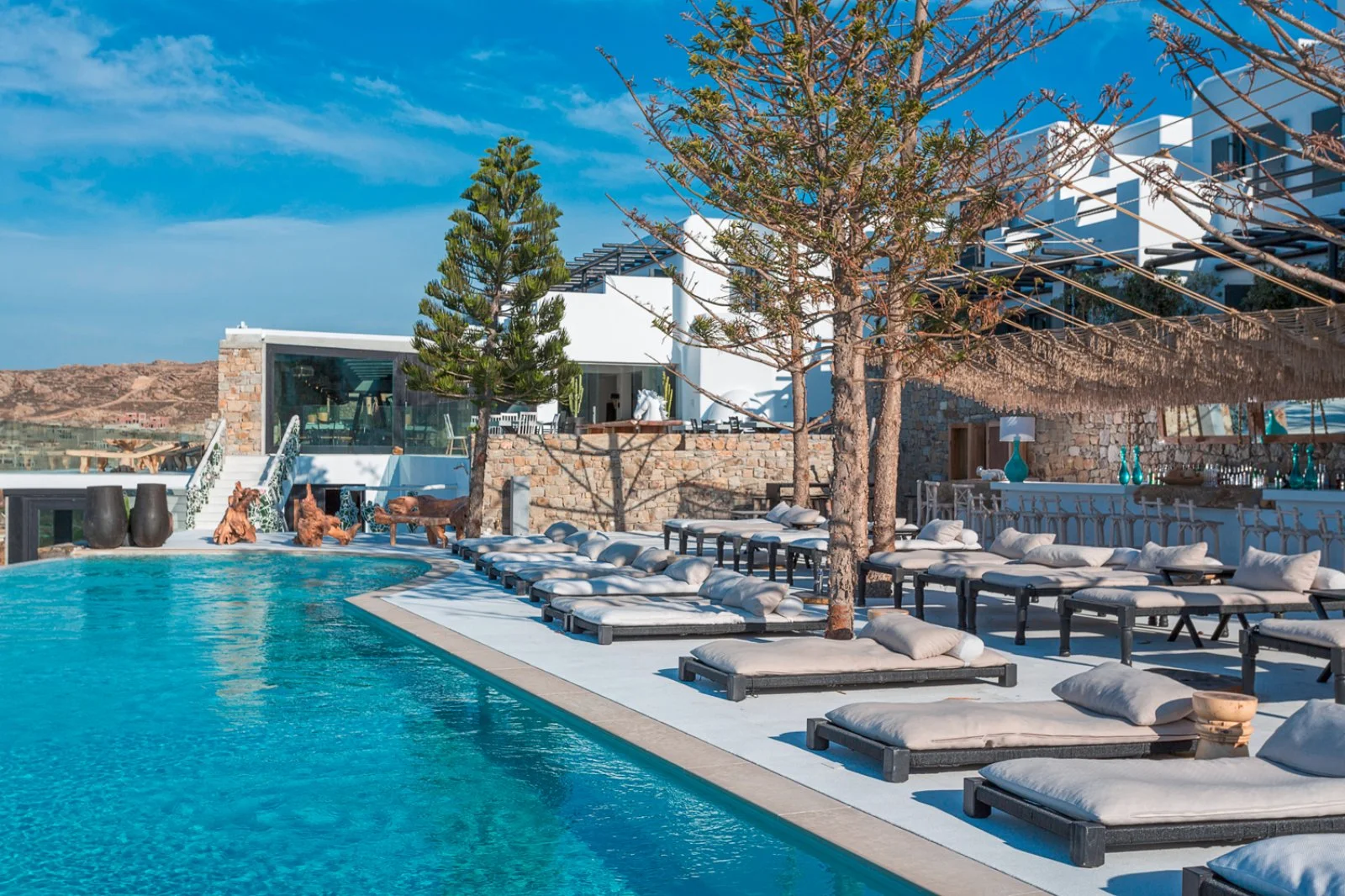Affacciato sulle acqua turchesi del Mar Egeo, Myconian Utopia è un vero e proprio emblema della bellezza mediterranea, grazie ad una riuscita combinazione tra design sofisticato e contemporaneo e la spettacolarità della natura incontaminata che lo circonda. L’hotel è stato prevalentemente costruito con materiali locali, nel rispetto dell’ambiente.
