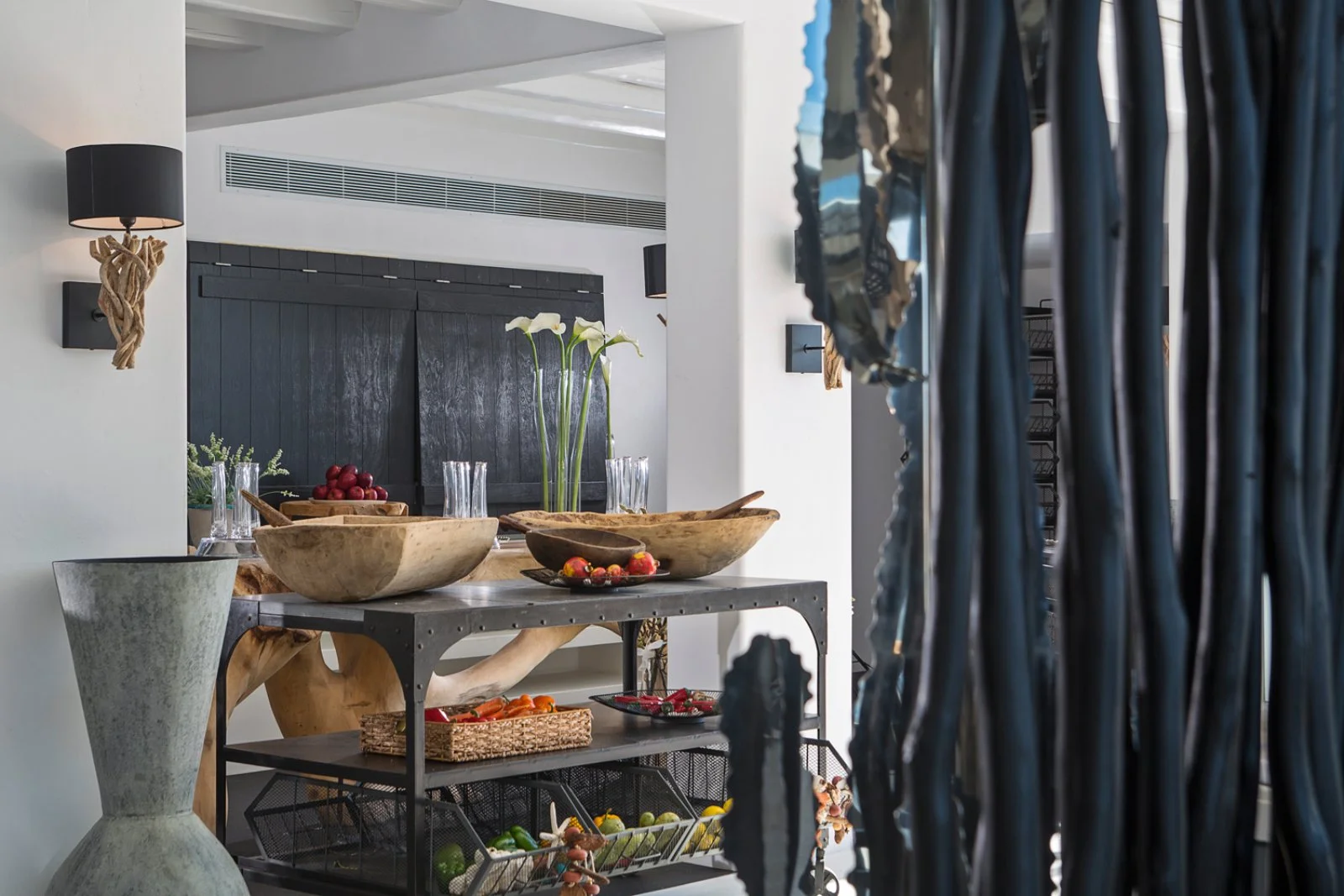 La colazione viene servita presso il ristorante principale, Pavilion Restaurant, caratterizzato da un ambiente di lusso, chi sceglie il trattamento mezza pensione, qui potrà gustare un set menù di 3 portate (sono esclusi, tagli di carne pregiata, pesce fresco, aragosta e bevande). La struttura dispone, inoltre, di un elegante pool bar panoramico sulla baia di Elia, con un’atmosfera molto frizzante.