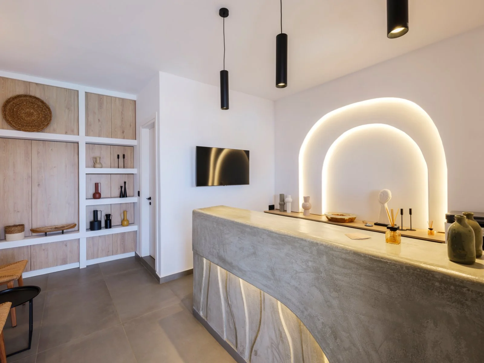 Si tratta di un complesso di 23 lussuosi appartamenti dalle ampie dimensioni e dal design moderno in tipico stile cicladico situato a