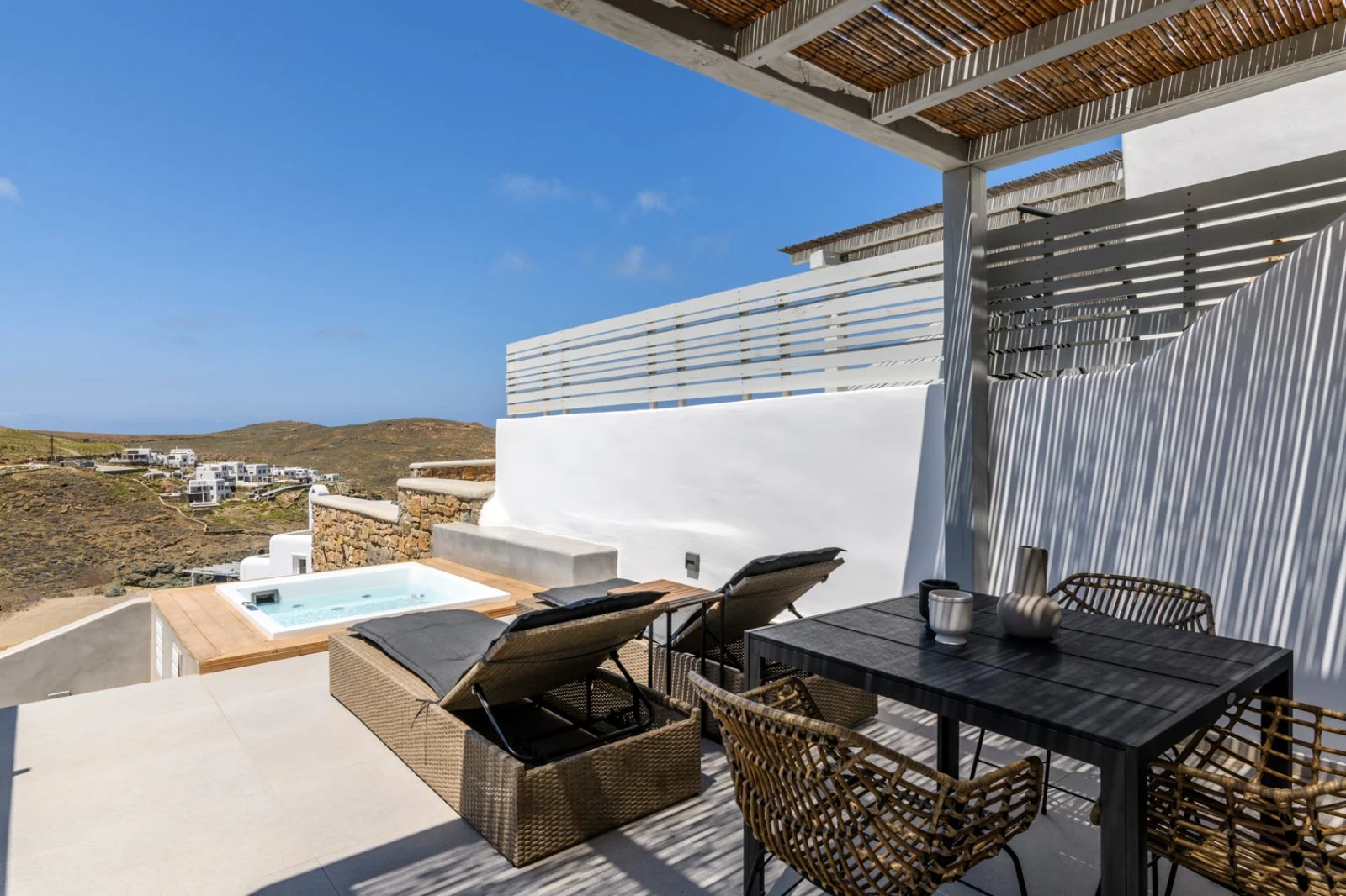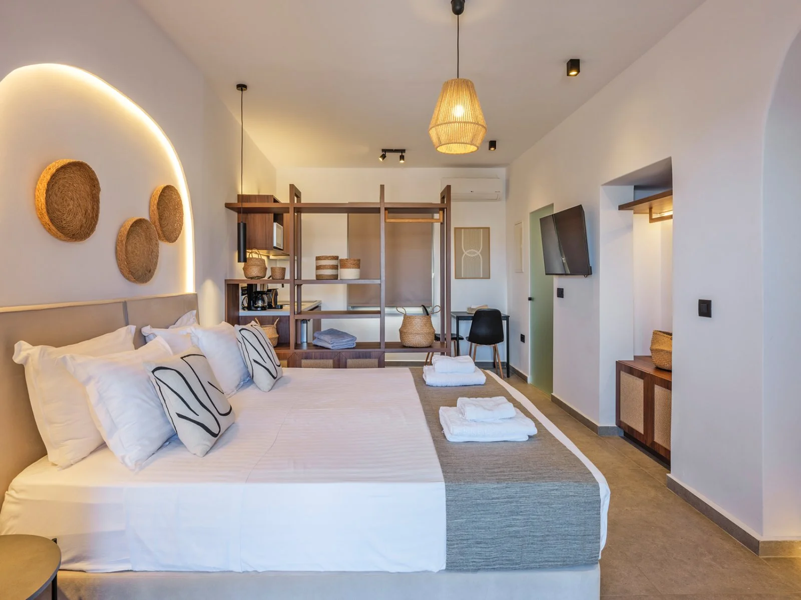23 unità di ampie dimensioni a seconda della tipologia e arredate in stile moderno e con gusto suddivise tra suite con idromassaggio esterno (35 m²) fino a 3 persone, maisonette (55 m²) con e senza idromassaggio esterno fino a 5 persone, residence con idromassaggio esterno (75 m²) fino a 5 persone e residence con piscina privata o idromassaggio esterno (90 m²) fino a 7 persone, tutte con incantevole vista mare e dotate di servizi privati, asciugacapelli, aria condizionata, TV satellitare, set di accappatoio e ciabattine, angolo cottura attrezzato con minifrigo, bollitore, kit per preparazione tè e caffè, macchinetta del caffè con cialde, microonde e tostapane, cassetta di sicurezza, connessione Wi-Fi gratuita e patio o balcone. Cambio asciugamani e pulizie giornaliere, cambio lenzuola 2 volte a settimana.