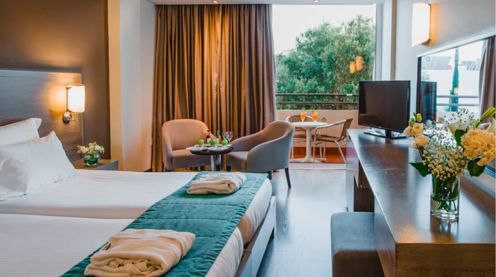 Le sistemazioni sono 224, semplici e funzionali, arredate con mobili in legno abbinati a calde tonalità crema, che contribuiscono a dare all’ambiente un forte senso di luminosità e comfort. Tutte le camere sono ubicate in strutture disposte in modo semicircolare attorno alla piscina e si suddividono tra superior e deluxe, con vista interna o vista piscina e camere promo senza balcone, queste ultime sono camere a tariffa promozionale e con disponibilità limitata. Tutte dotate dei principali servizi, tra i quali aria condizionata, TV satellitare, Wi-Fi, minifrigo, cassetta di sicurezza.