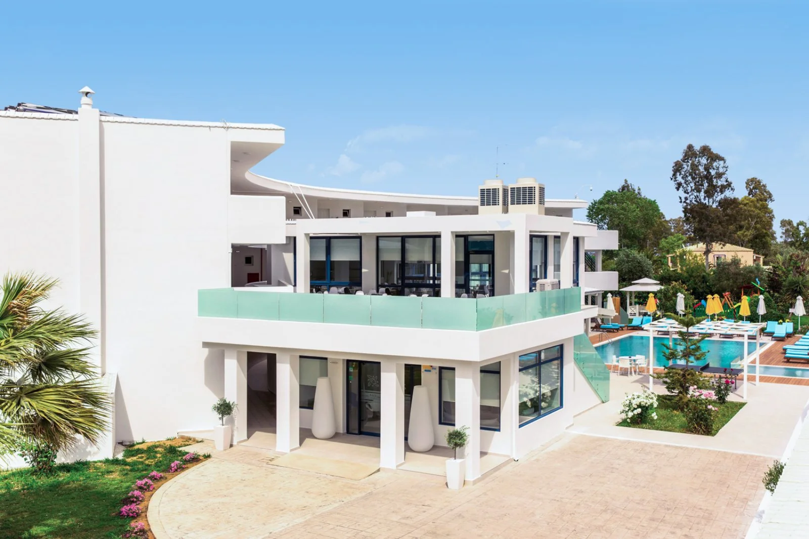 Recentemente rinnovato con ambienti luminosi dagli arredi contemporanei e colori freschi e vivaci, l’hotel è costituito da vari edifici disposti attorno alla piscina e circondati da giardini e spazi verdi.
