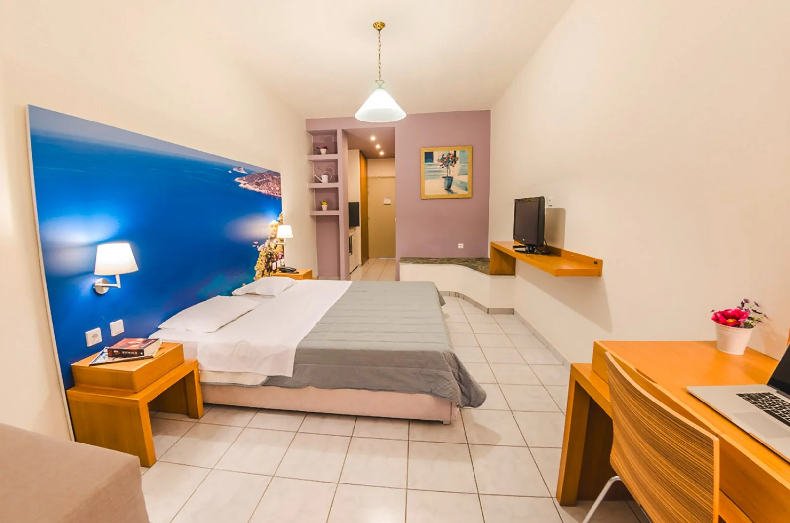 Piccolo complesso di appartamenti in posizione tranquilla e panoramica, con una splendida vista sul mar Egeo. La gestione è familiare e l’ambiente accogliente.