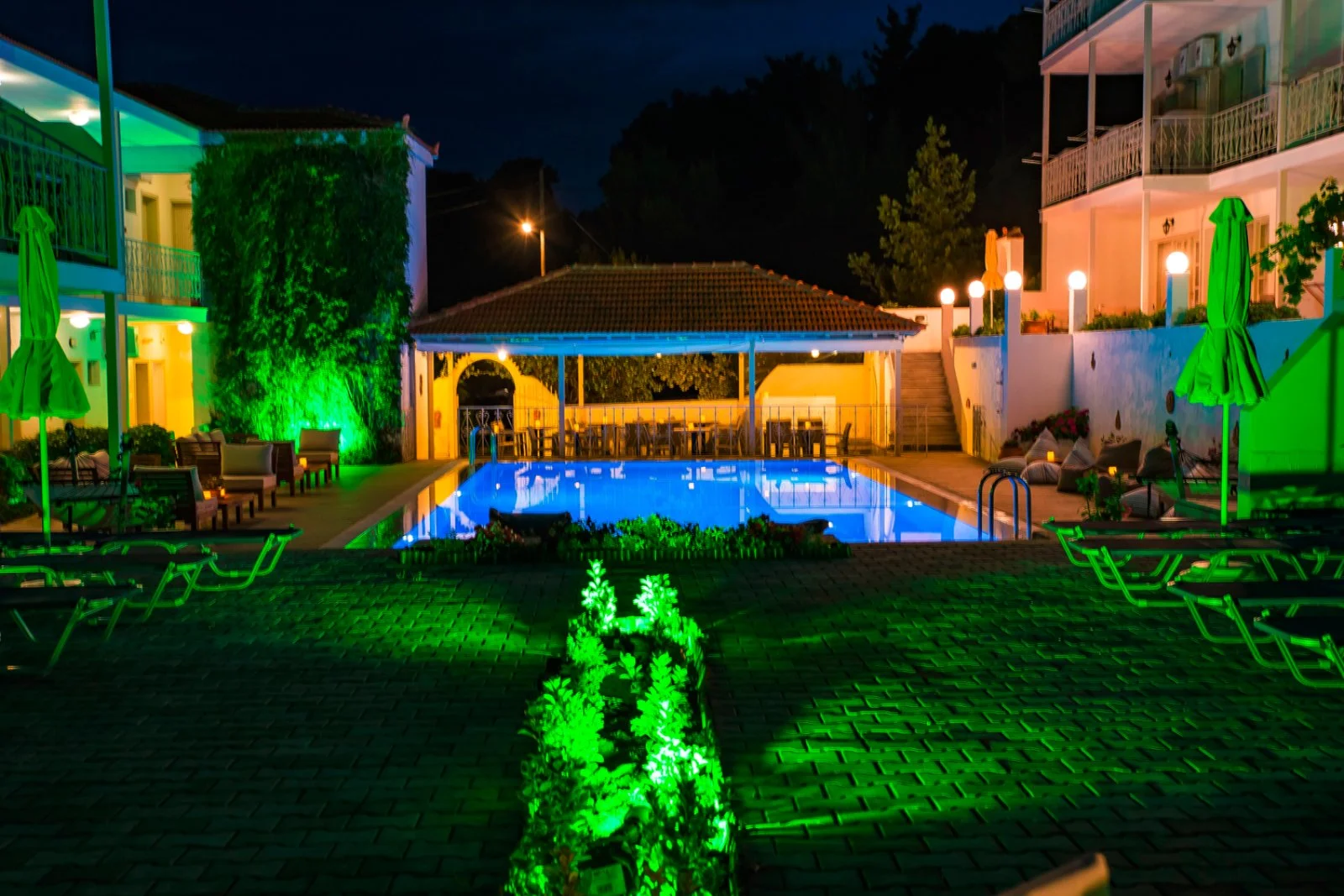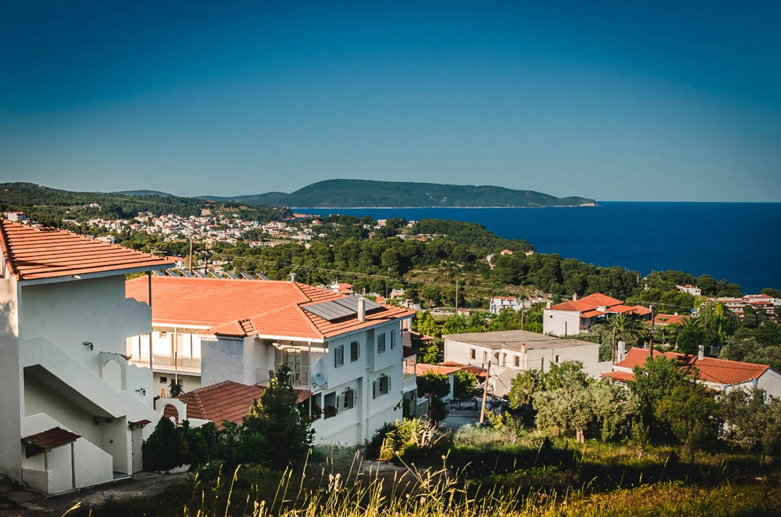 Dista circa 1 km in auto e 650 m di sentiero a piedi da Patitiri e dal porto. Costituita da due edifici a 2 e 3 piani che si affacciano sulla piscina.