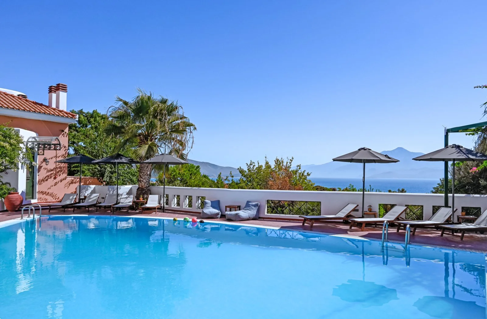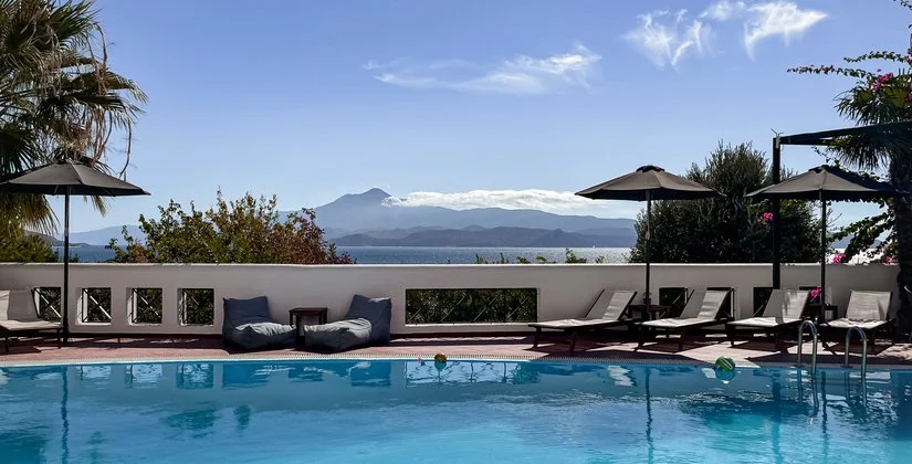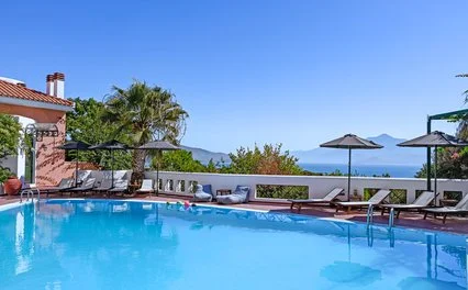 La spiaggia di ciottoli più vicina alla struttura, Panagia Eleoussa, dista circa 150 m. Dispone di 1 piscina con area separata per bambini. Utilizzo gratuito di lettini e ombrelloni solo in piscina, teli mare disponibili su cauzione.