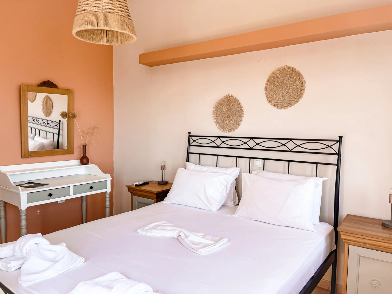16, bilocali e luminose maisonette dai colori delicati, dotati di servizi privati, asciugacapelli, telefono, TV satellitare, aria condizionata, minifrigo, angolo cottura attrezzato, cassetta di sicurezza, Wi-Fi, balcone o terrazza. I bilocali vista mare con camera da letto e soggiorno, con uno o due letti singoli, ospitano fino a 4 adulti; le maisonette vista mare, disposte su due livelli, con area giorno con uno o due letti singoli al piano inferiore e camera da letto, collegata da scala interna, al piano superiore, possono ospitare fino a 5 adulti. Pulizia giornaliera e cambio biancheria 2 volte a settimana.