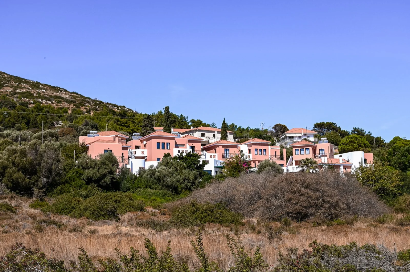 A circa 2,5 km dal centro di Pythagorion, 10 km da Samos città e 7 km dall’aeroporto. Fermata bus di linea a 200 m. In posizione panoramica, delizioso complesso costituito da 7 piccoli edifici a 2 piani dai colori caldi e delicati, raccolti attorno a una piscina centrale. Tutto intorno ulivi e macchia mediterranea.