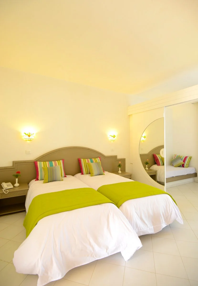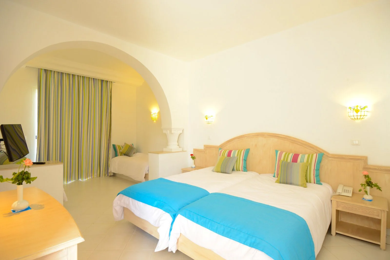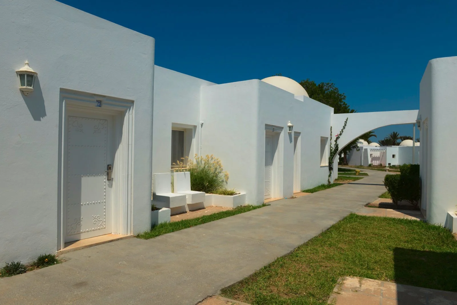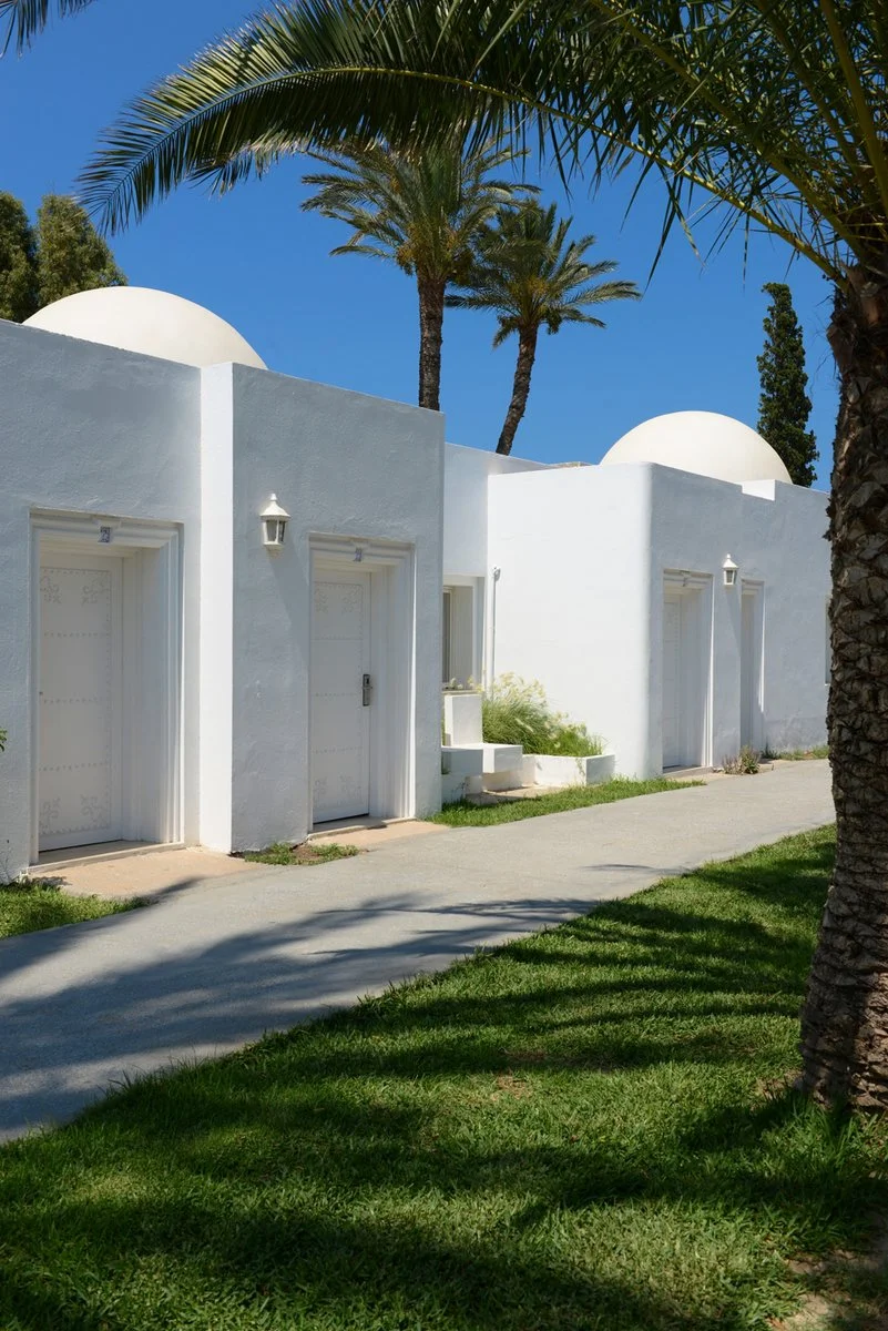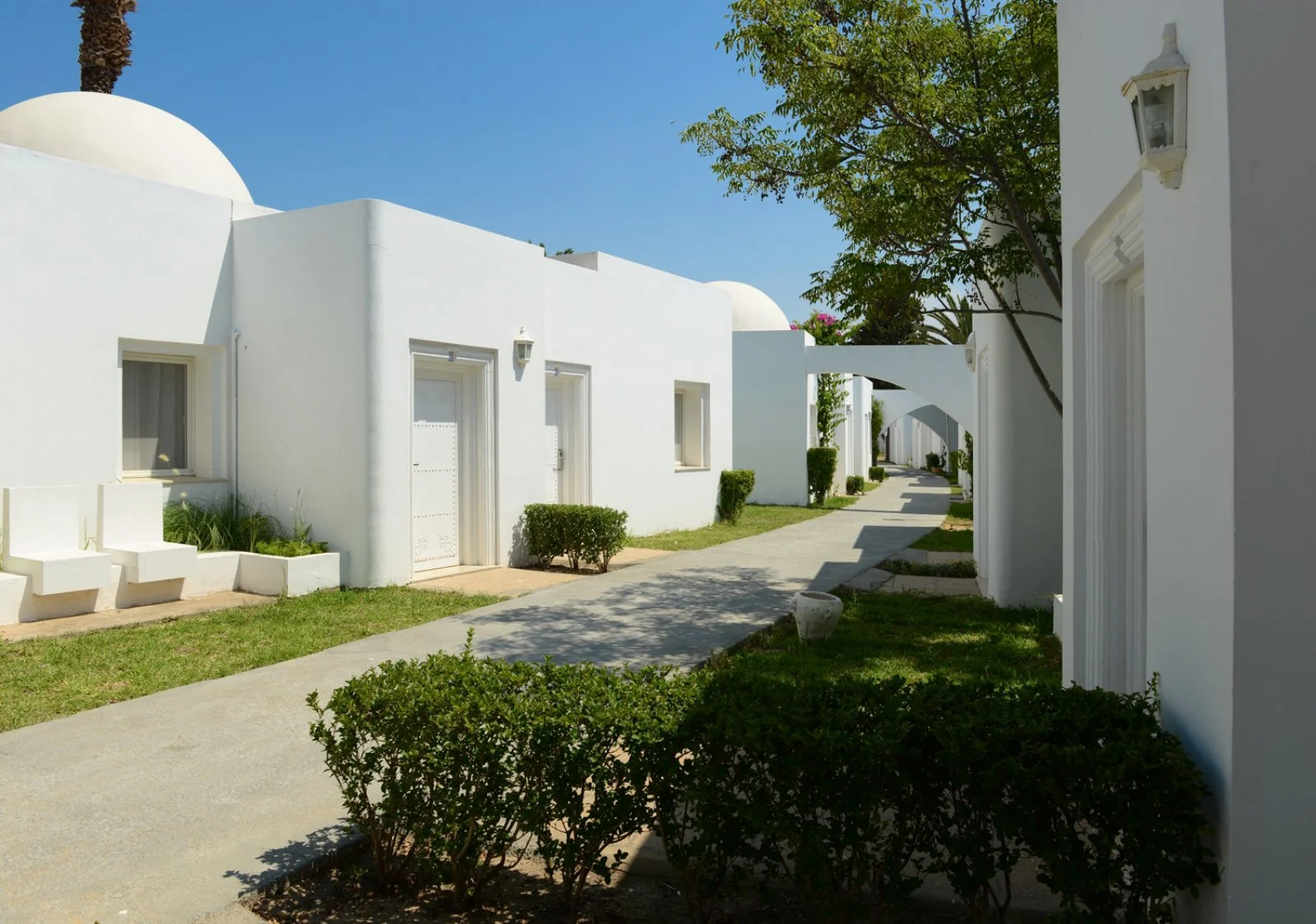 5 adulti insieme, perfette quindi per gruppi di amici e famiglie numerose. Le camere del Resort, arredate in stile semplice ma dai colori vivaci, sono collocate in graziosi bungalow bianchi e circondate da verdi e curati giardini. La combinazione del colore bianco, tipico tunisino e di colori vivace, viene ripreso anche nelle zone comuni che conferiscono al Resort un’aria giovane e frizzante. Per lo spasso di grandi e piccini, inoltre, il Resort è attrezzato di un completo