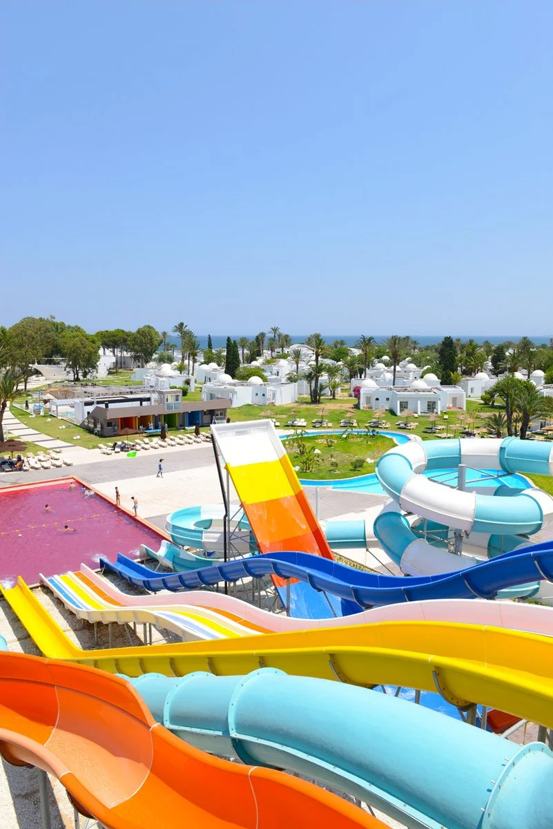 Aquapark dotato di numerosi scivoli, che renderanno la vostra vacanza ancora più indimenticabile. Punto di forza sicuramente la ristorazione, in quanto dotato di ben 3 ristoranti tematici: mediteranneo, tunisino e di pesce, usufruibili una volta a soggiorno in base a disponibilità dai clienti Eden Viaggi e da un