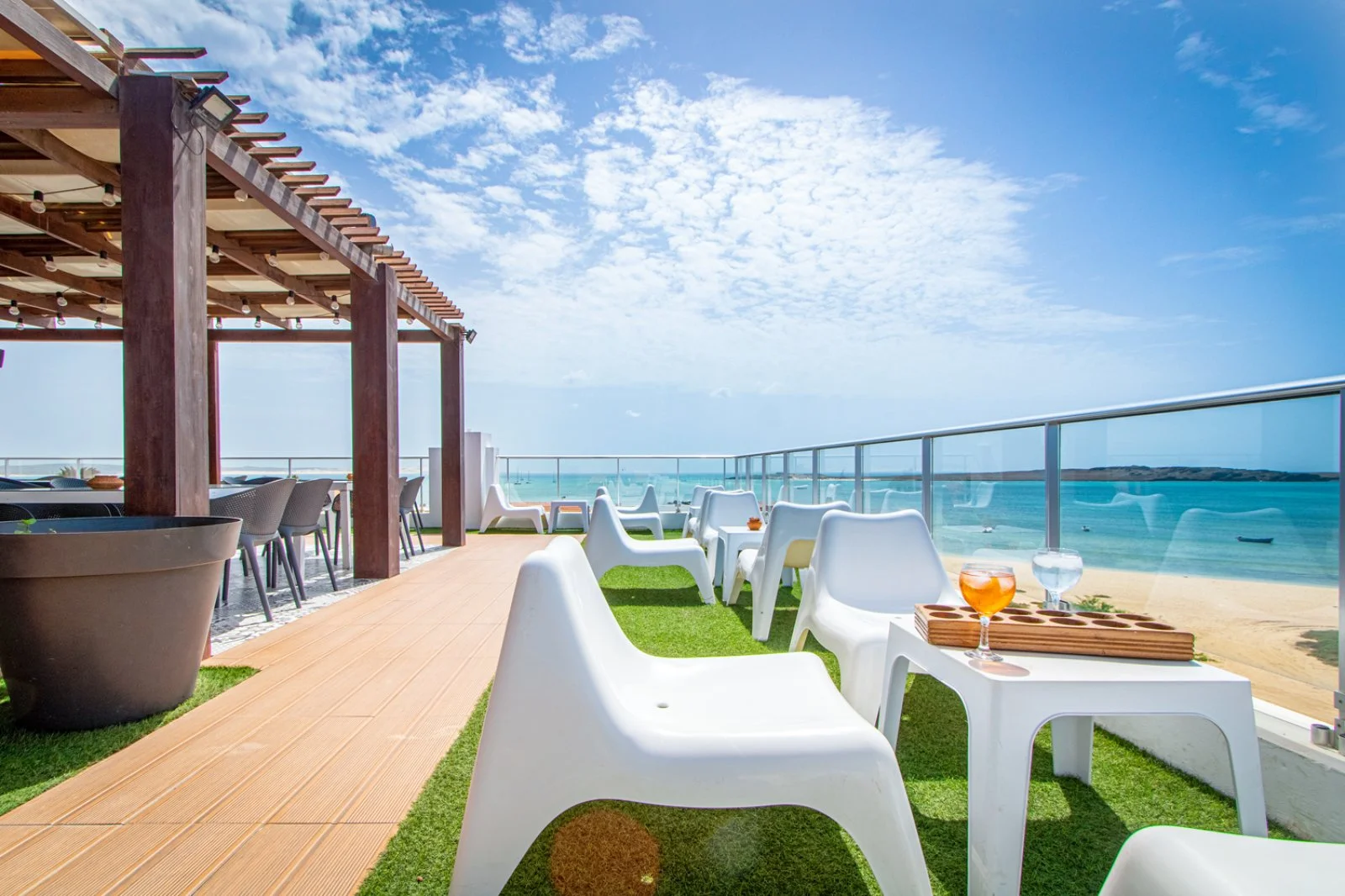 terrazza panoramica, che ospita un bar e un piccolo idromassaggio, da cui si gode una vista mozzafiato sulla spiaggia di Estoril e sulle isole vicine di