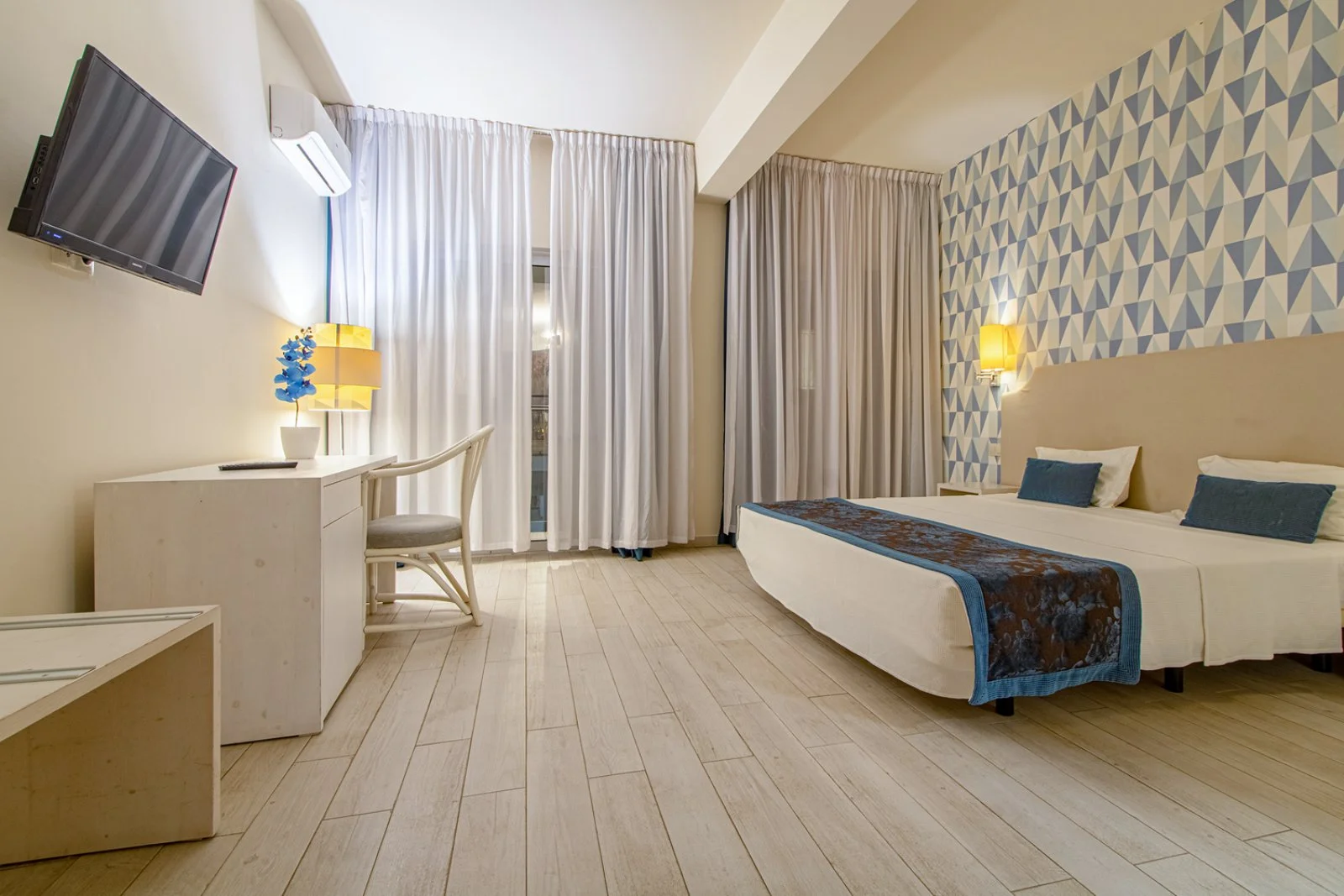 33 camere (20 m2), con servizi privati, aria condizionata, asciugacapelli, TV satellitare, minifrigo, cassetta di sicurezza, connessione wi-fi gratuita e terrazza o balcone.