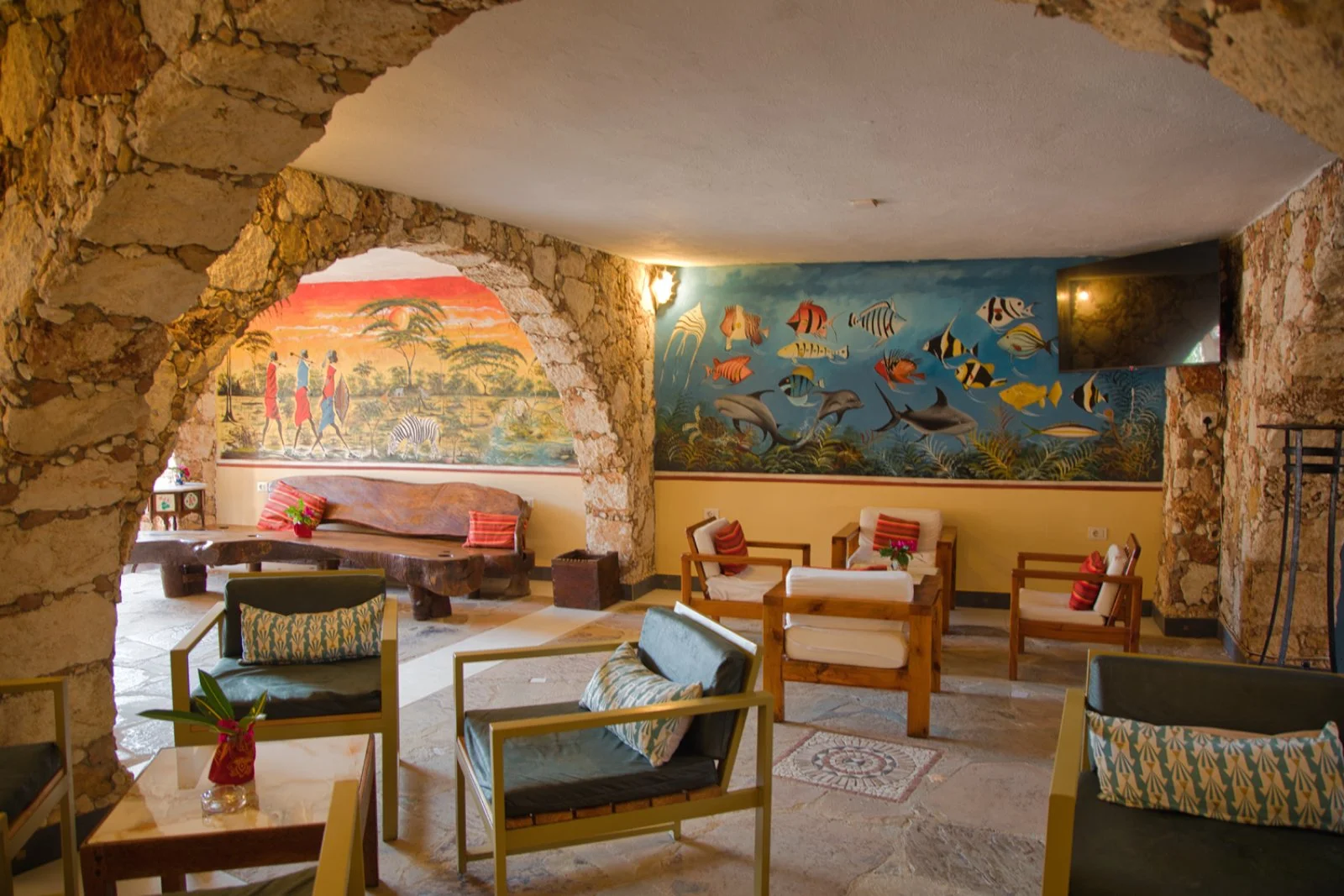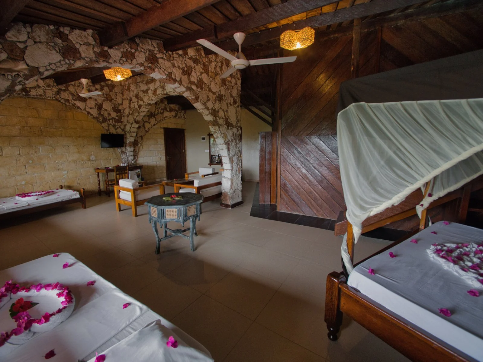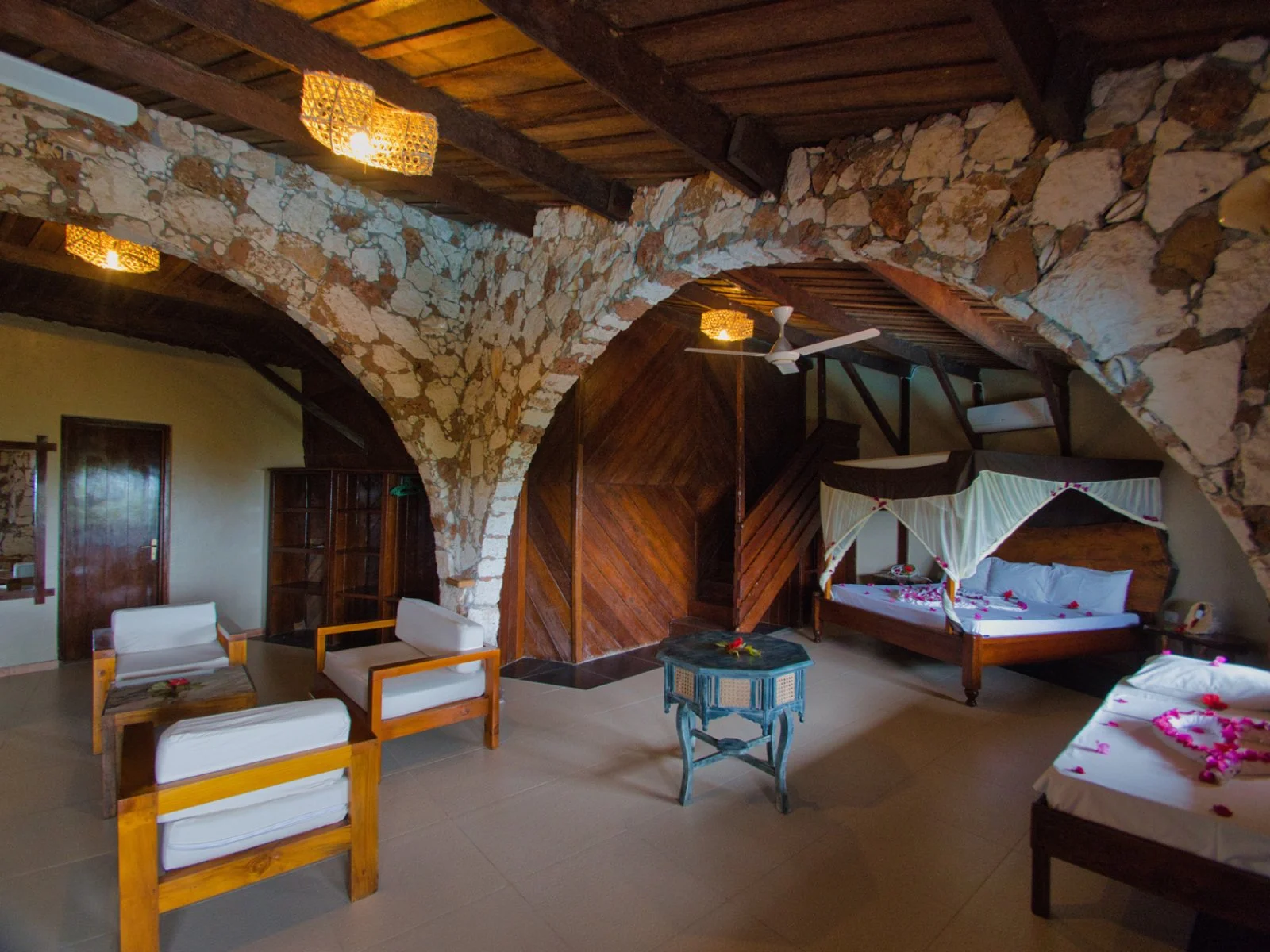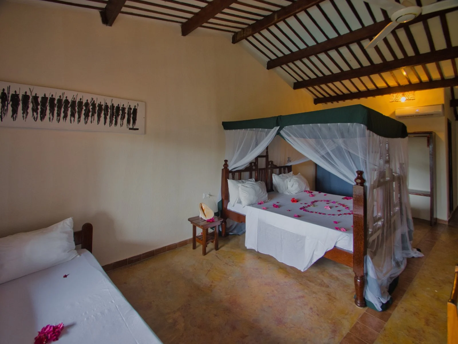 l’estrema tranquillità e trasparenza delle acque, poco soggette al fenomeno delle maree e quindi facilmente balneabili. Ogni camera del Resort è arredata in modo unico, con un richiamo allo stile e al gusto africano grazie al mobilio tradizionale. L'
