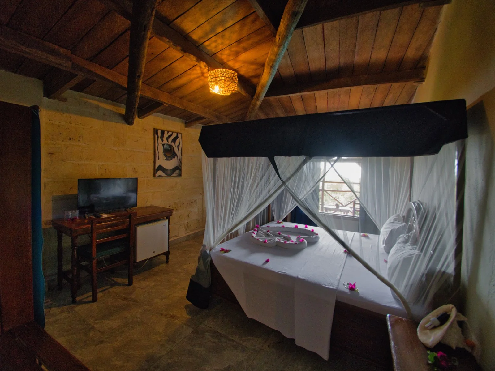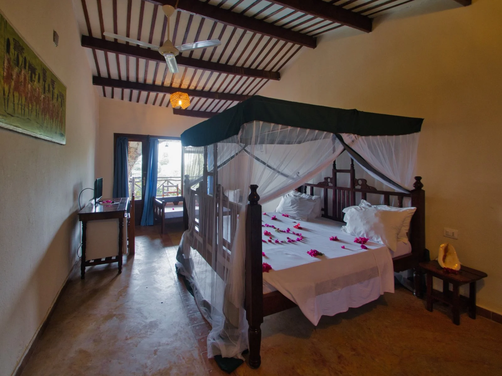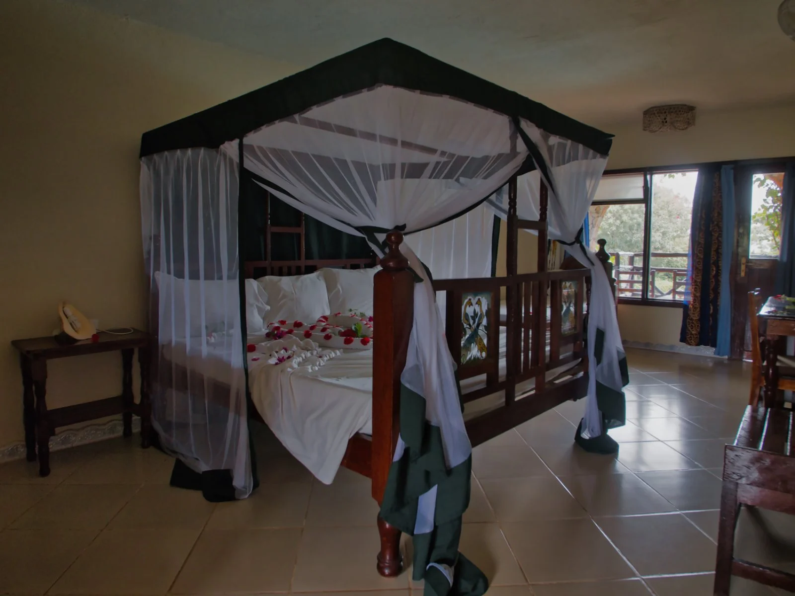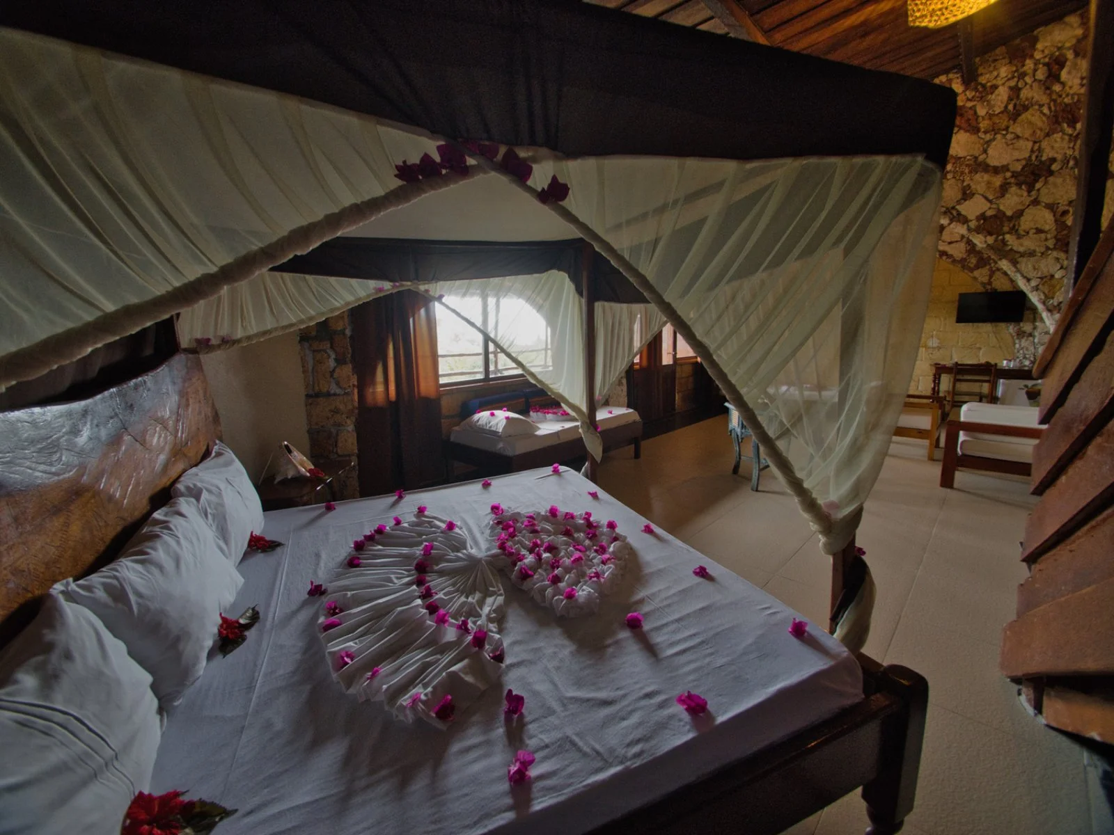 l’estrema tranquillità e trasparenza delle acque, poco soggette al fenomeno delle maree e quindi facilmente balneabili. Ogni camera del Resort è arredata in modo unico, con un richiamo allo stile e al gusto africano grazie al mobilio tradizionale. L'