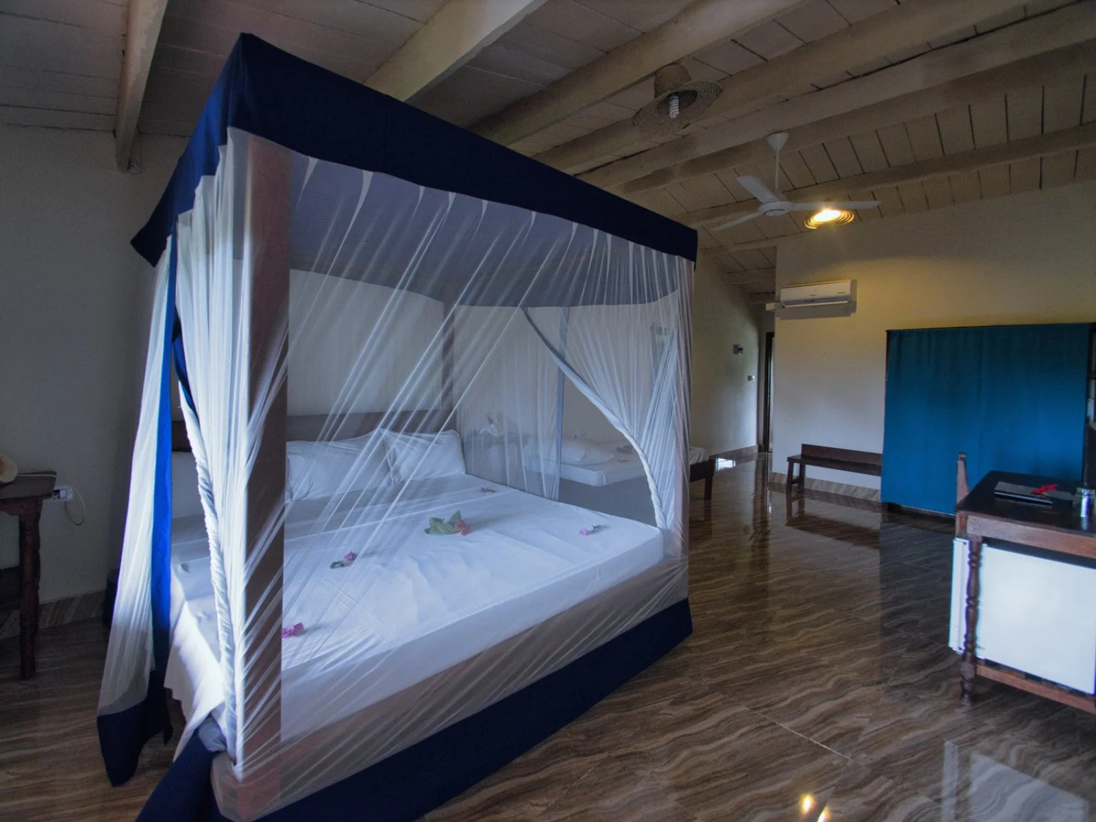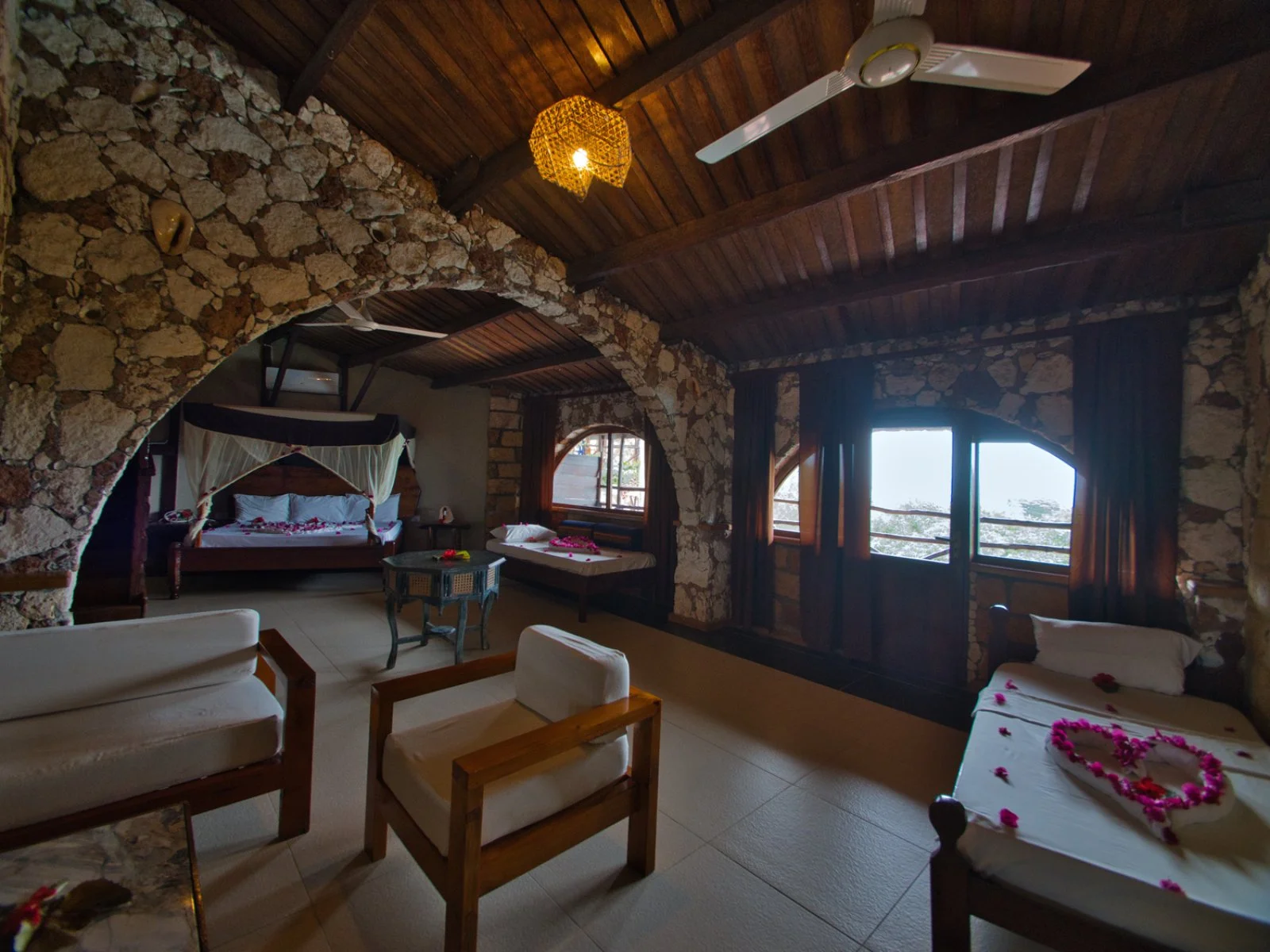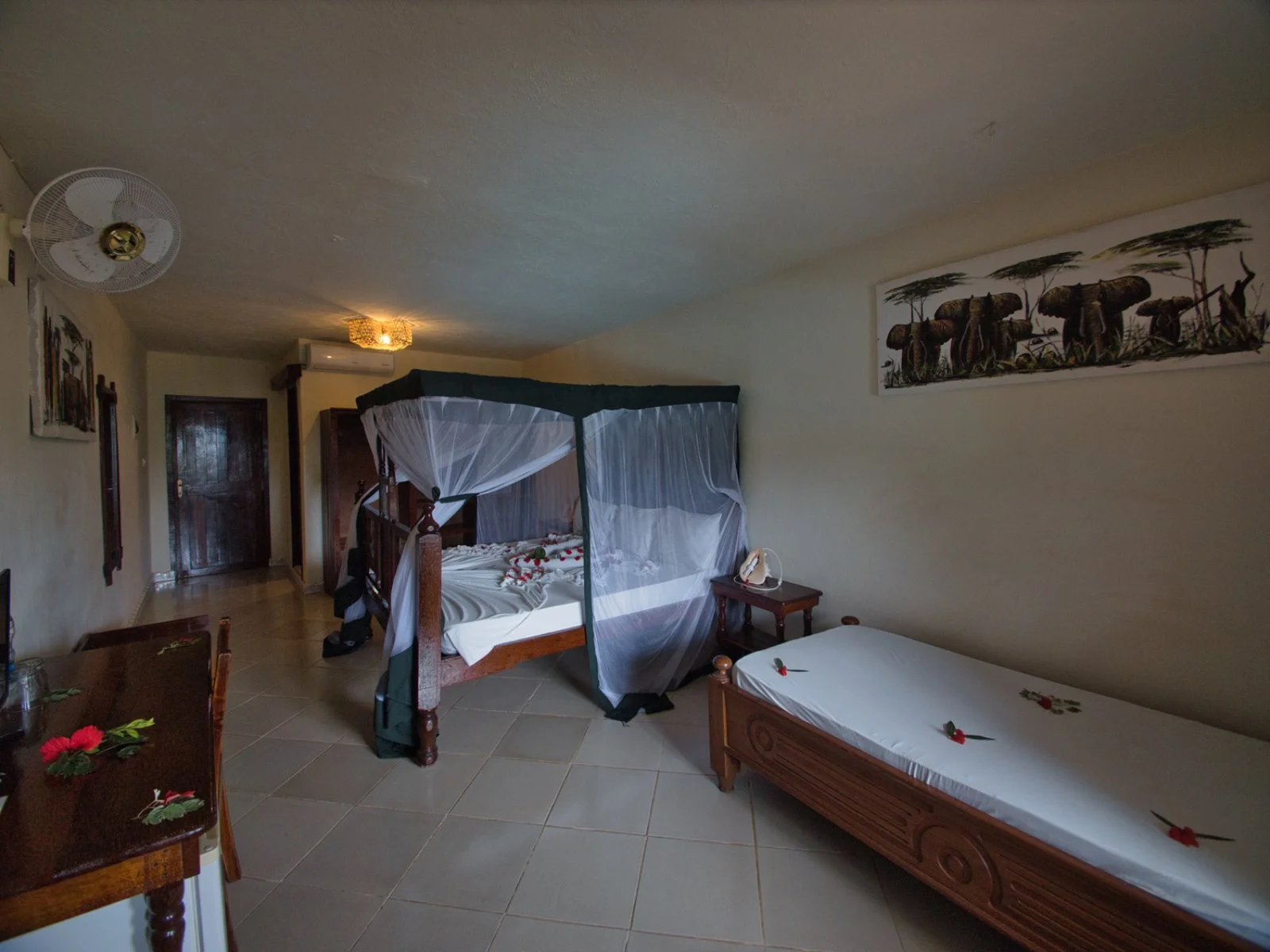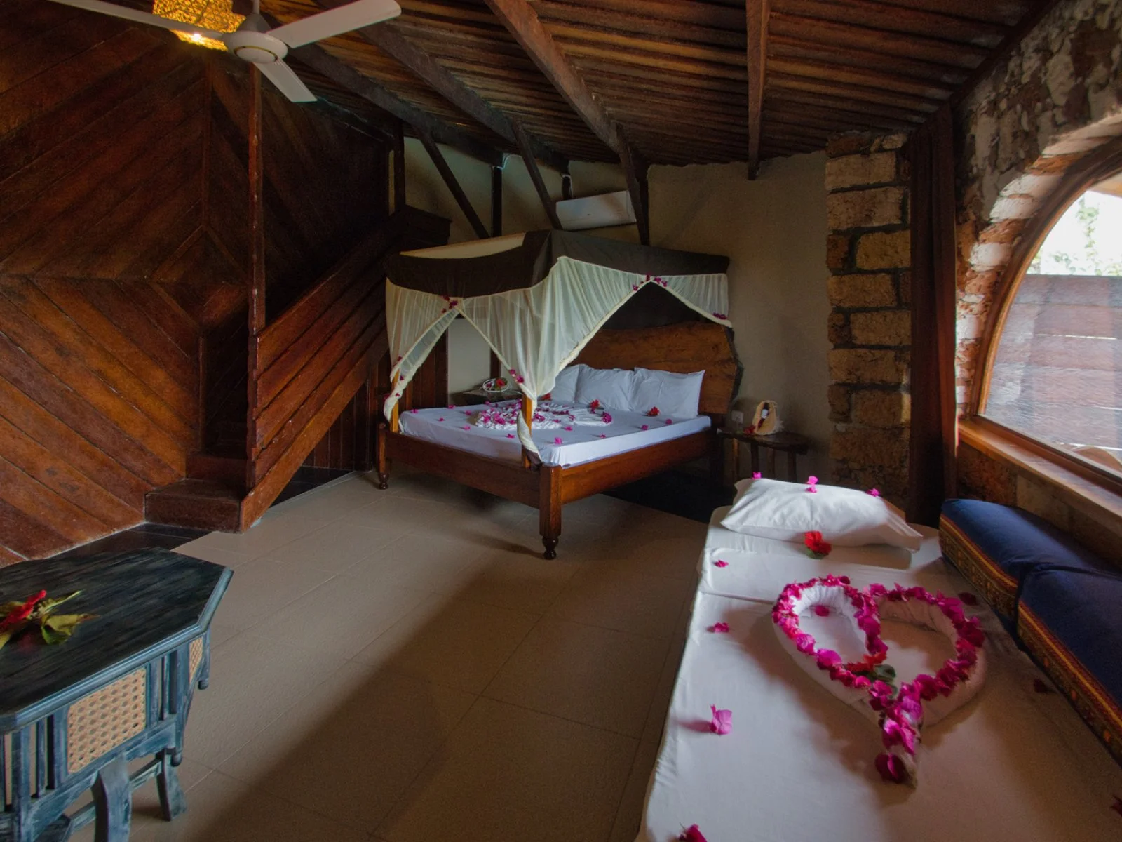 l’estrema tranquillità e trasparenza delle acque, poco soggette al fenomeno delle maree e quindi facilmente balneabili. Ogni camera del Resort è arredata in modo unico, con un richiamo allo stile e al gusto africano grazie al mobilio tradizionale. L'
