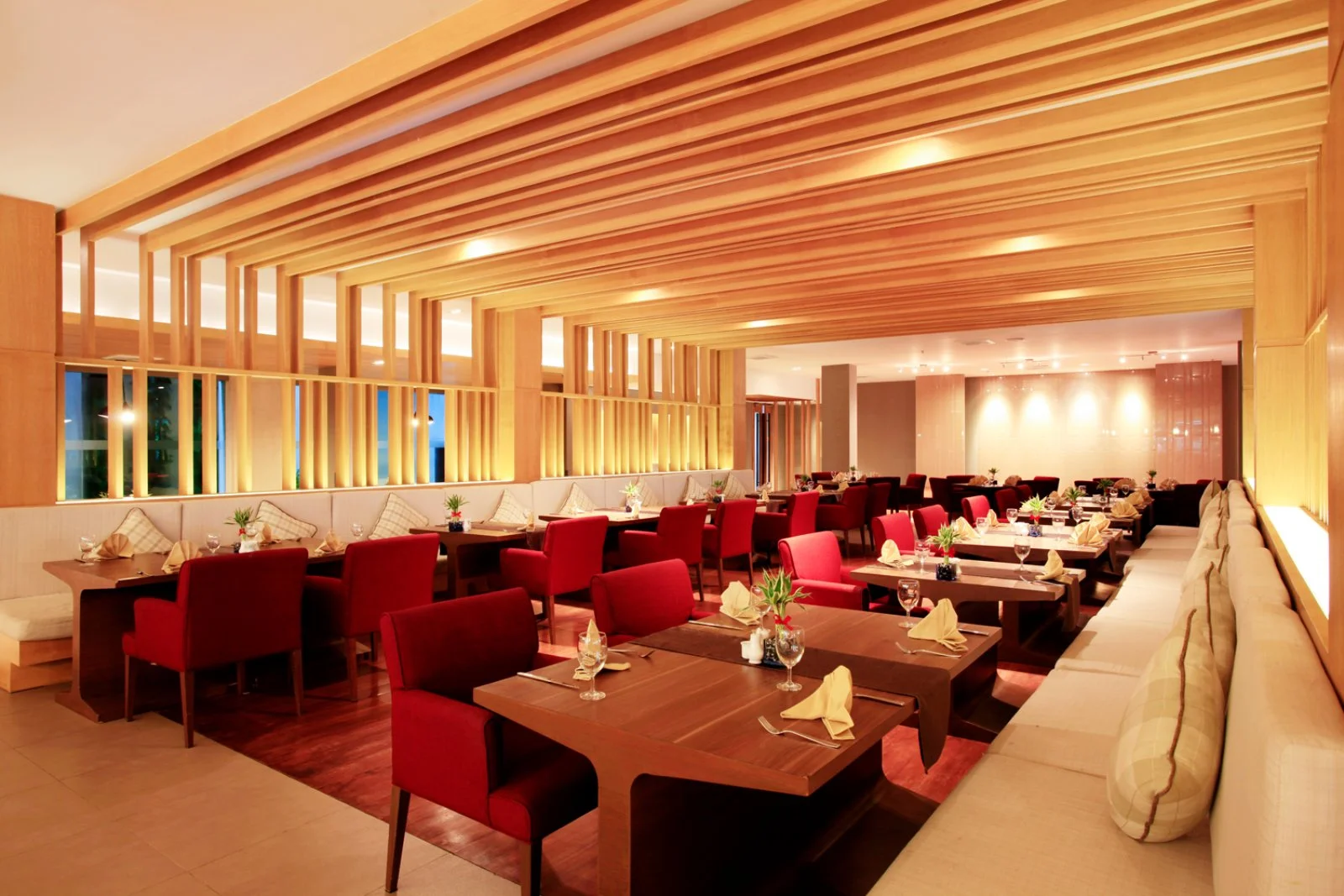5 ristoranti, di cui uno principale Bua Luang con servizio a buffet per la colazione e 3 ristoranti fronte mare con servizio à la carte specializzati in cucina thailandese e internazionale e una birreria belga. 4 bar di cui due pool bar e uno fronte spiaggia. I clienti in mezza pensione libera potranno scegliere liberamente tra pranzo e cena avvisando la reception con un giorno di anticipo (soggetto a disponibilità). Bevande incluse in caso di pensione completa: 1 bicchiere di birra locale o vino della casa e soft drink.