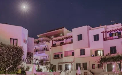 un piccolo mondo mediterraneo dove tradizione, comfort e bellezza si intrecciano in un’esperienza che conquista sin dal primo sguardo. Un vero e proprio villaggio, fatto di vicoli bianchi, scorci sul mare, piscine che invitano al relax e spazi pensati per farvi sentire parte di un luogo vivo, accogliente, ricco di energia. Qui ogni giornata inizia con la luce del sole che accarezza le terrazze e termina con il profumo del mare che si mescola ai suoni della sera cretese. La posizione è ideale per chi vuole vivere Hersonissos in tutte le sue sfumature: il mare a pochi passi, le taverne tradizionali, i negozi, la movida del centro e la lunga passeggiata sul porto. T