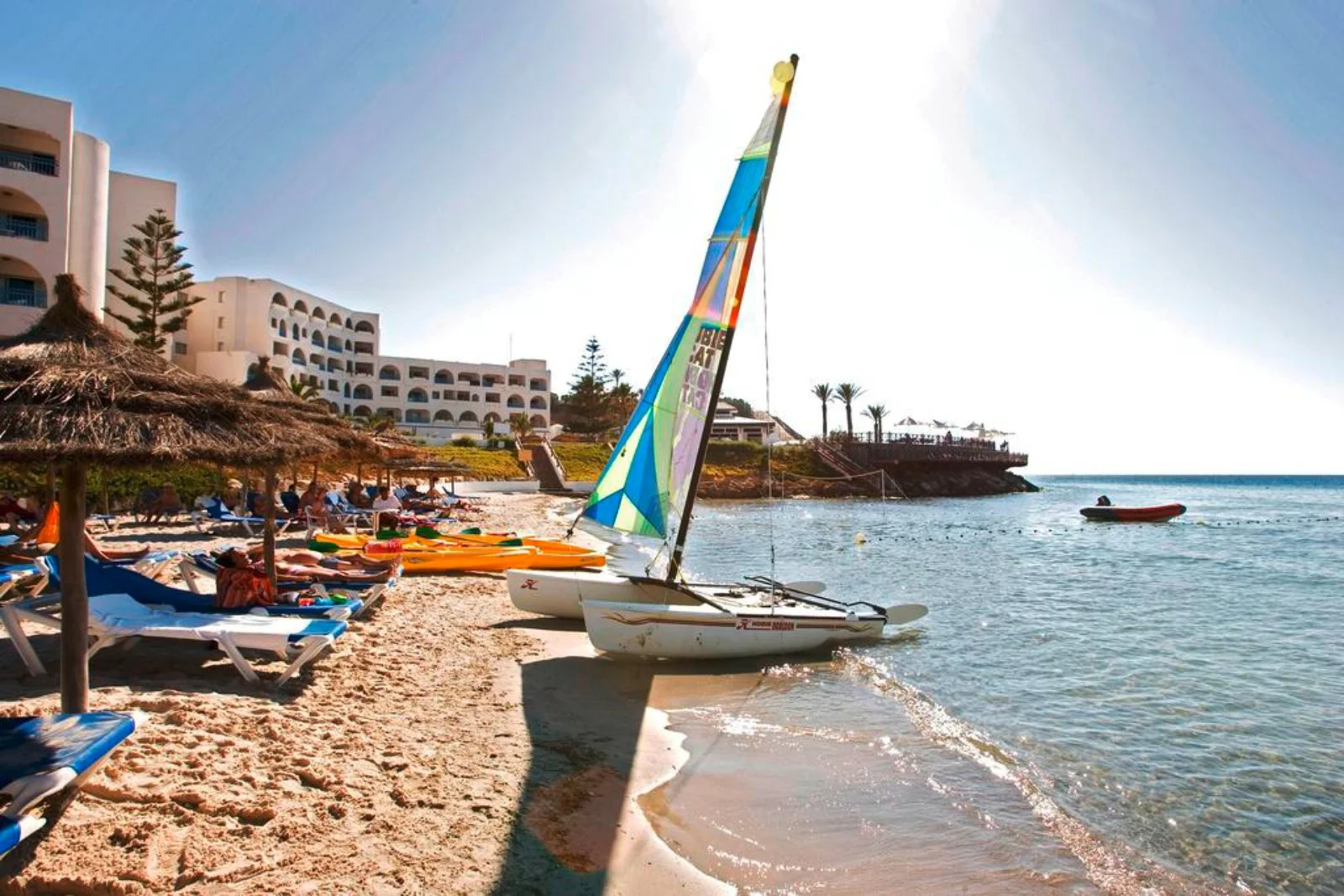 Una delle migliori proposte in assoluto per posizione, davvero strategica, e per rapporto qualità prezzo! La struttura, che si presenta molto ben curata, con ambienti comuni eleganti e camere luminose e confortevoli, è ubicata nel pieno centro della Marina di Monastir, vero cuore pulsante della movida della graziosa località balneare, a due passi da tutte le principali attrazioni. Il piacevole porticciolo, con bella passeggiata lungomare e vivace vita notturna, dista poco più di 100 metri.