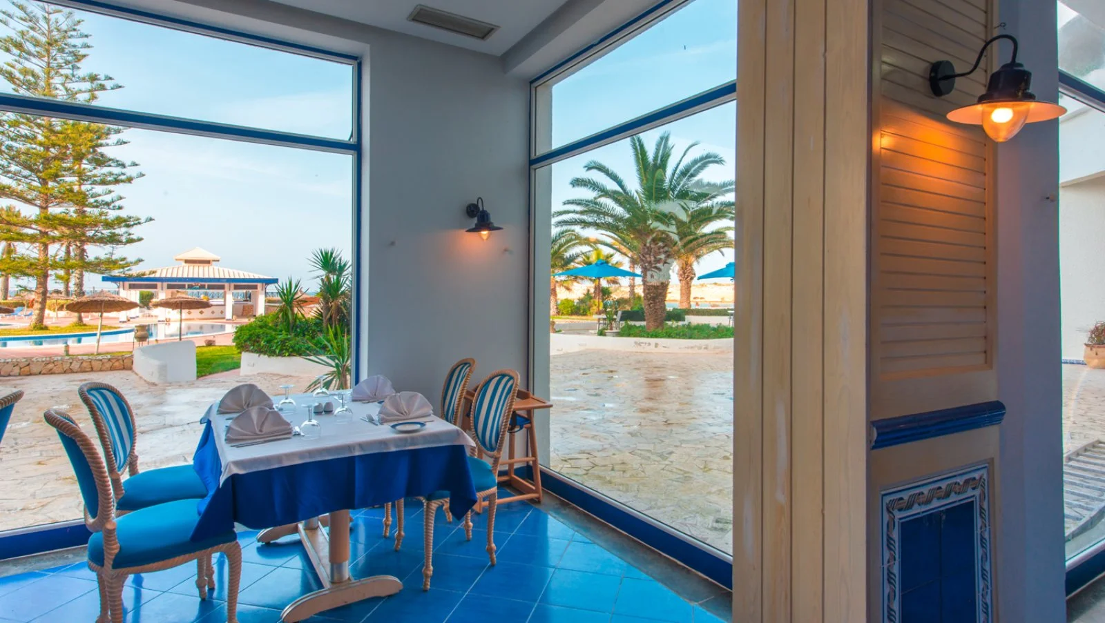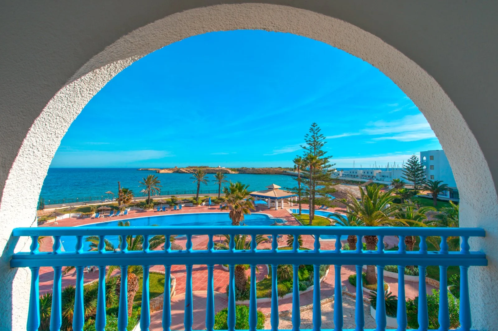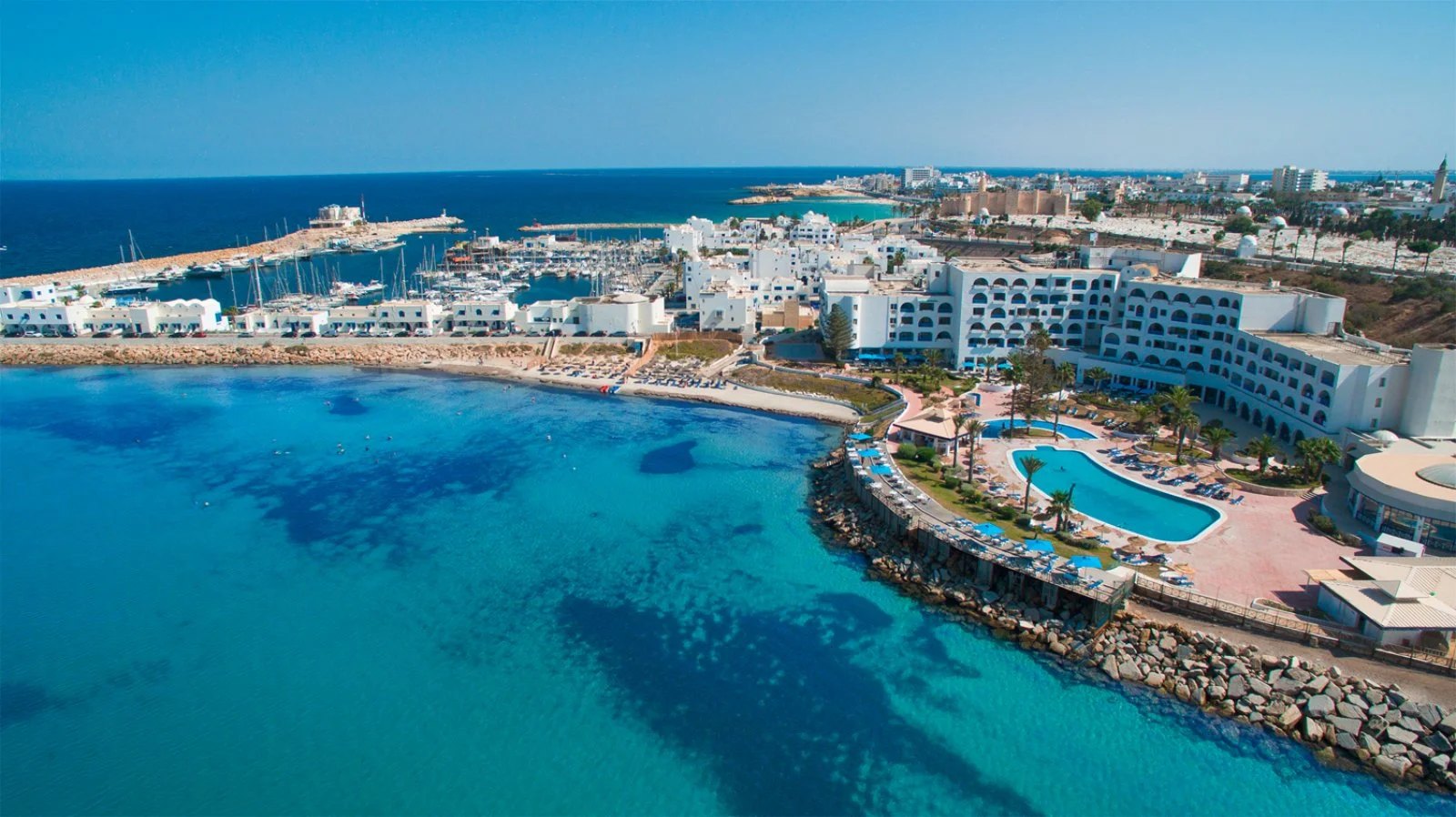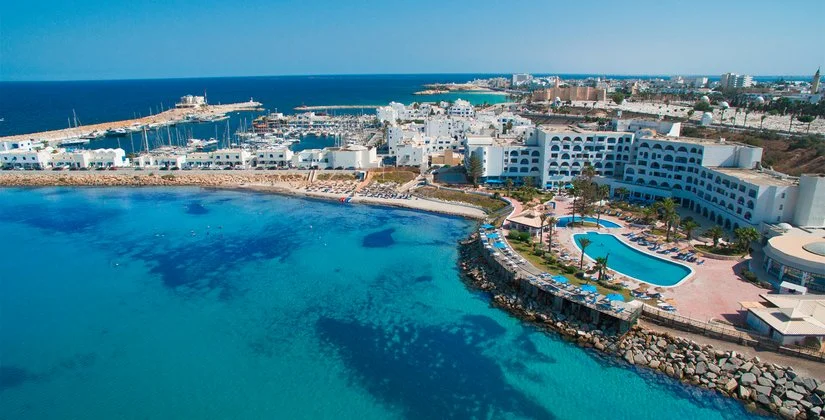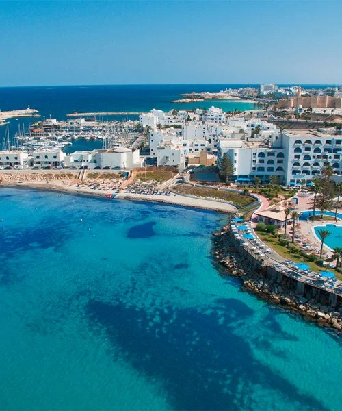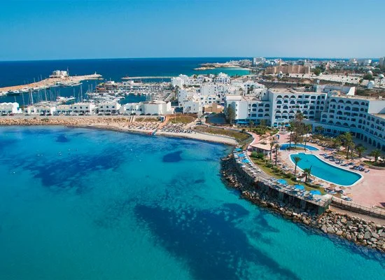 Monastir, sul porto turistico della città, direttamente sulla spiaggia, a 9 km dall'aeroporto di Monastir, 20 da Sousse e 170 dall'aeroporto di Tunisi.