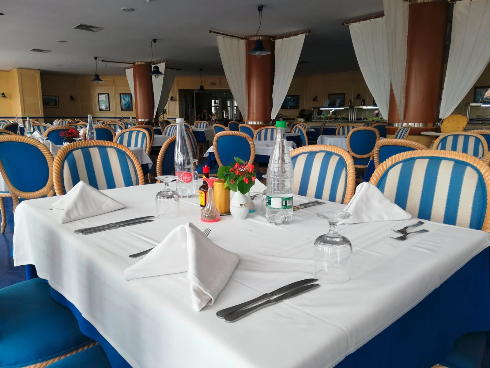 197 camere (32 m², max 3 adulti + 1 bambino), su 5 piani, tutte con servizi privati, asciugacapelli, telefono, aria condizionata (da giugno a settembre), TV satellitare, minifrigo, cassetta di sicurezza e connessione Wi-Fi gratuita. Disponibili, con supplemento, camere vista mare.