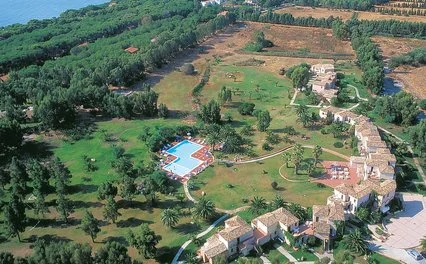 zona tranquilla e riservata, immerso in un parco giardino in un'area di oltre 70.000 mq. Potrete rilassarvi nella piscina di acqua salata con una grande area solarium e godere del mare cristallino nella spiaggia di Cala Brianza, a soli 250 m. Nelle immediate vicinanze potrete divertirvi con una scuola di equitazione, un campo da golf oppure noleggiare un'imbarcazione per godere appieno del mare sardo.