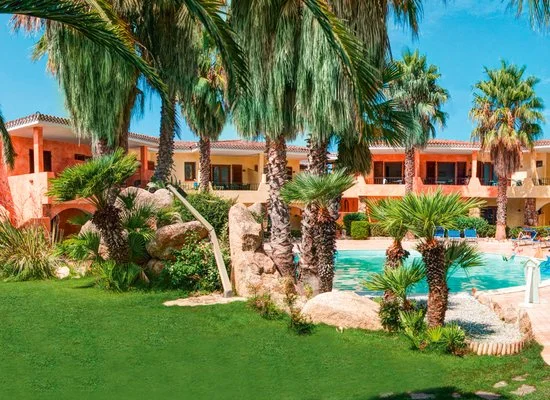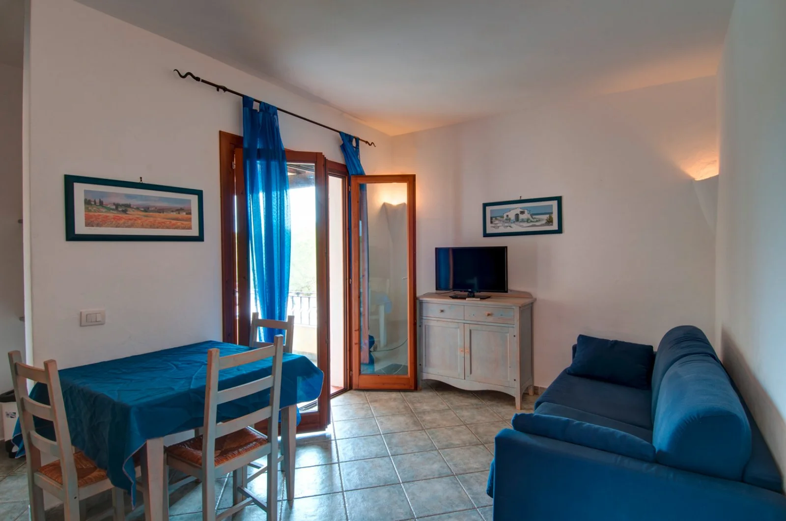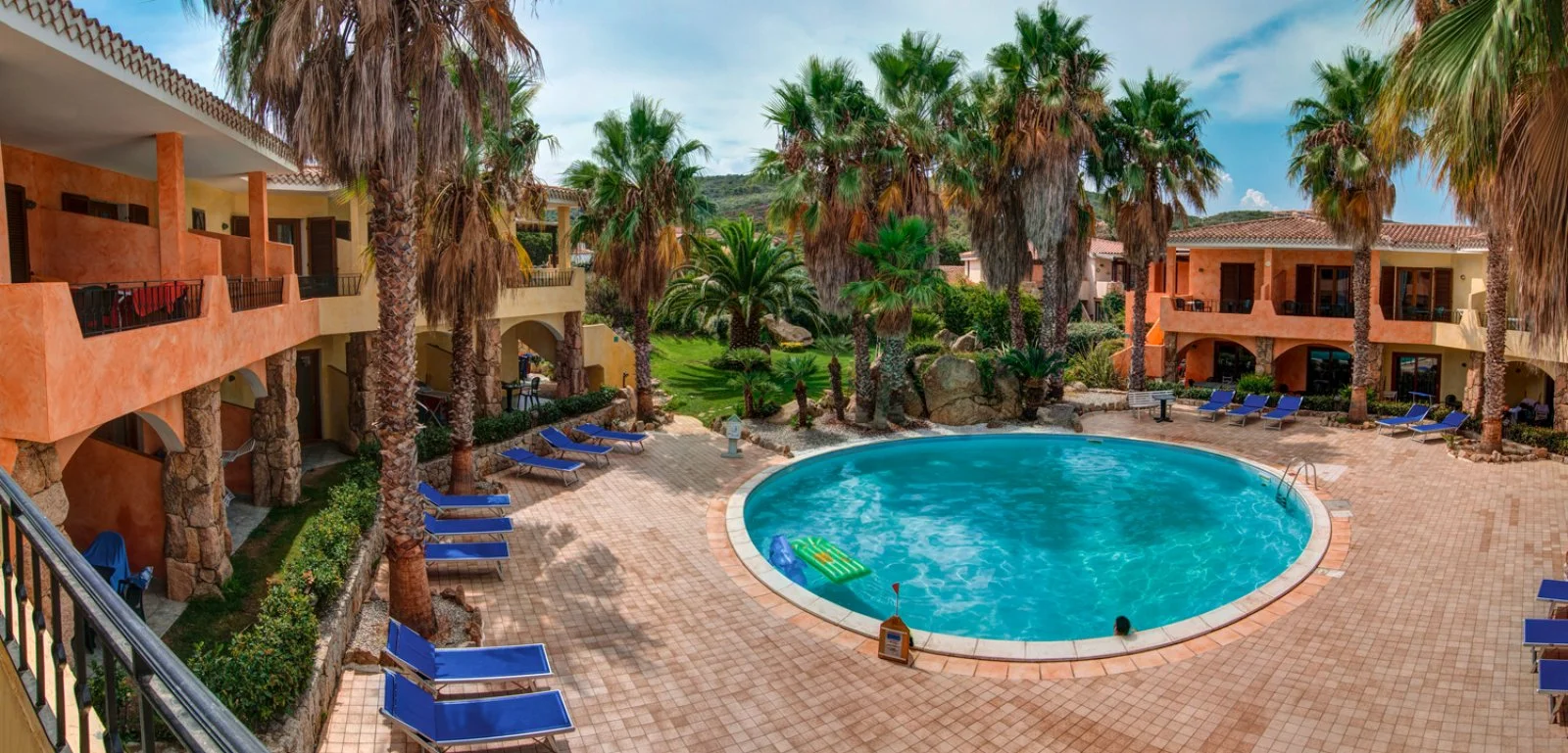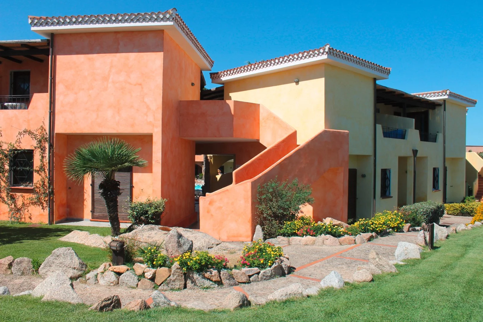 80 appartamenti, realizzati con la tipica pietra sarda e inseriti in giardini, sono distribuiti su due piani e dotati di servizi privati e asciugacapelli, tv, microonde, ferro ed asse da stiro (su richiesta), 1 ombrellone in dotazione per appartamento, aria condizionata (1 split), angolo cottura attrezzato, balcone o patio attrezzati, wi-fi (ad uso parziale). Si dividono in monolocali e bilocali, la tipologia premium con vista piscina.