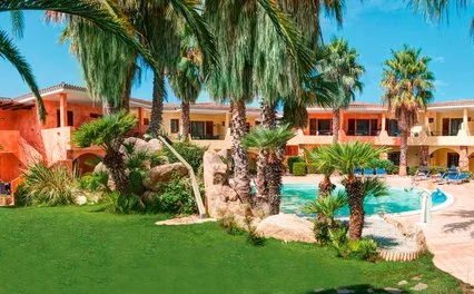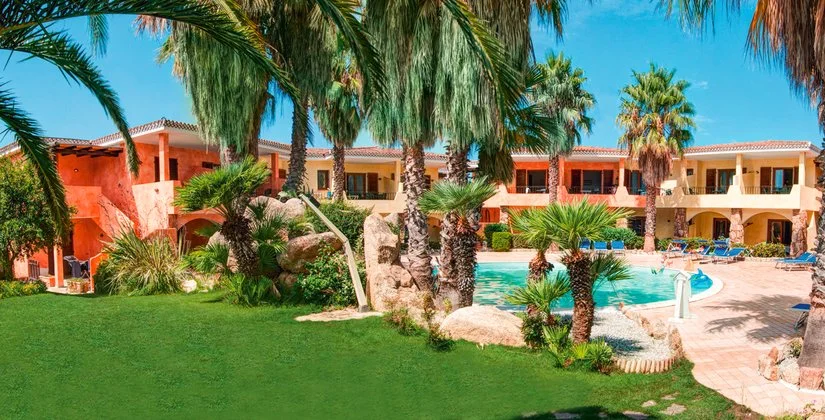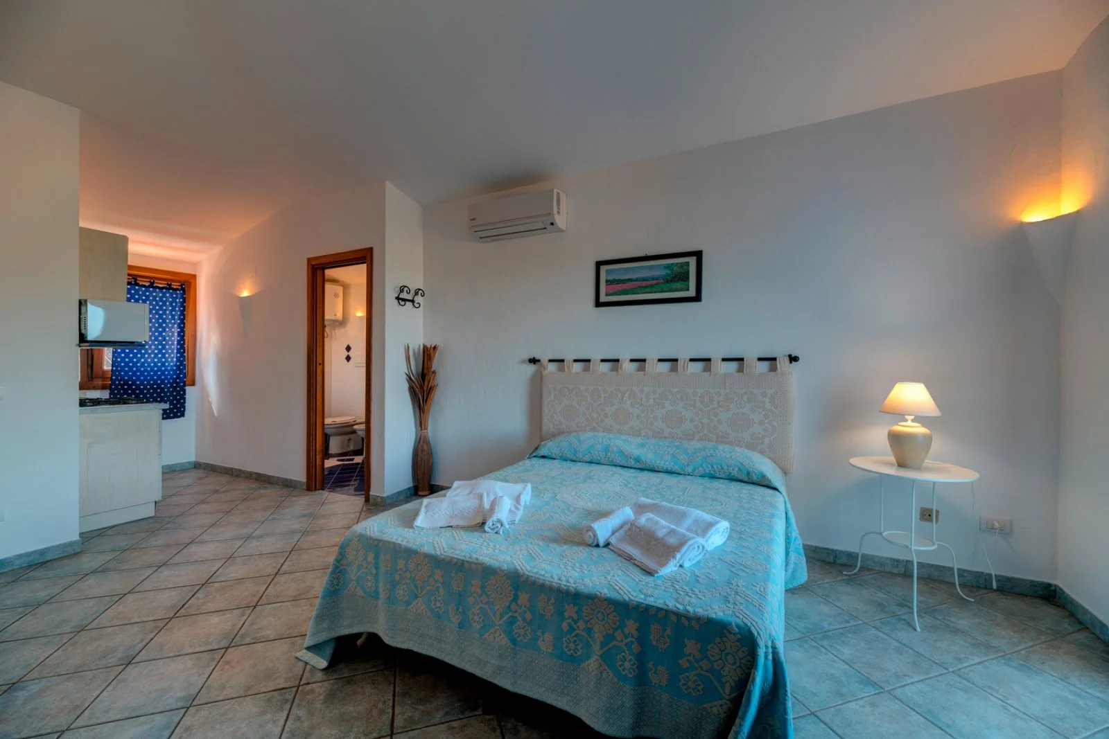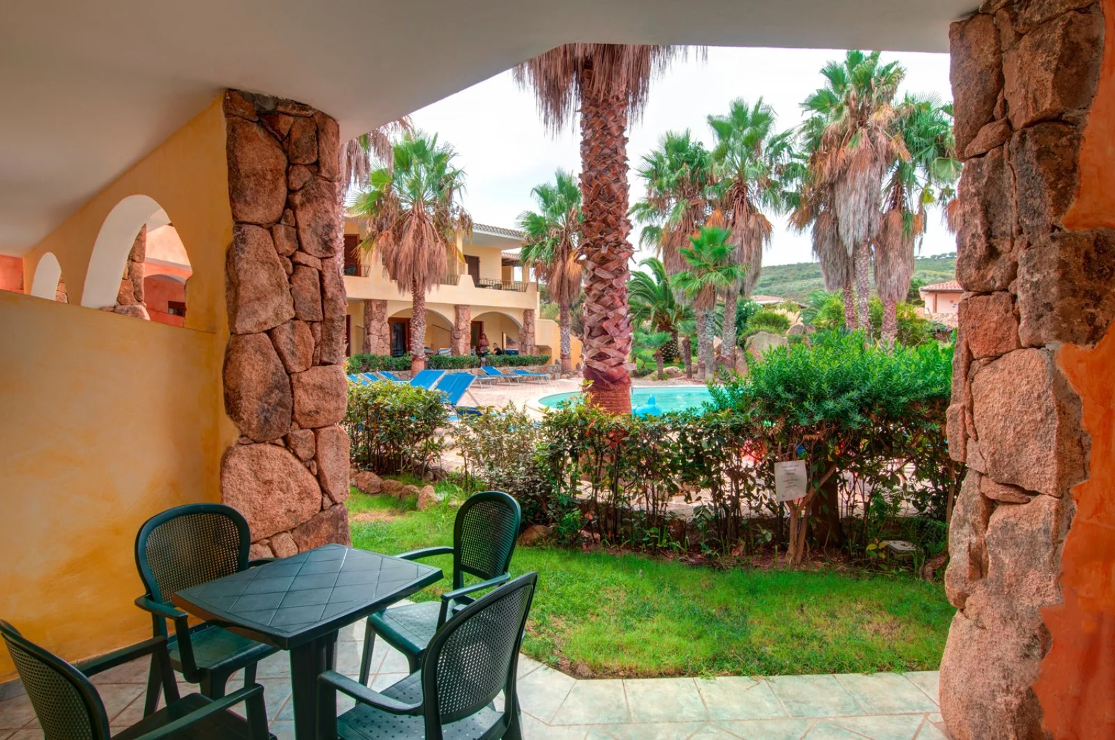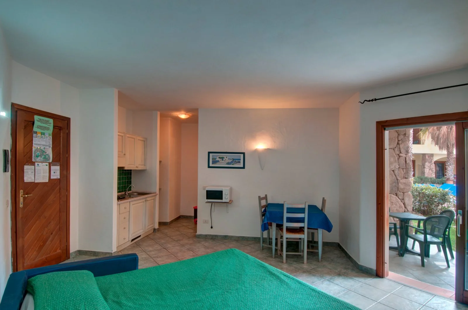 80 appartamenti, realizzati con la tipica pietra sarda e inseriti in giardini, sono distribuiti su due piani e dotati di servizi privati e asciugacapelli, tv, microonde, ferro ed asse da stiro (su richiesta), 1 ombrellone in dotazione per appartamento, aria condizionata (1 split), angolo cottura attrezzato, balcone o patio attrezzati, wi-fi (ad uso parziale). Si dividono in monolocali e bilocali, la tipologia premium con vista piscina.