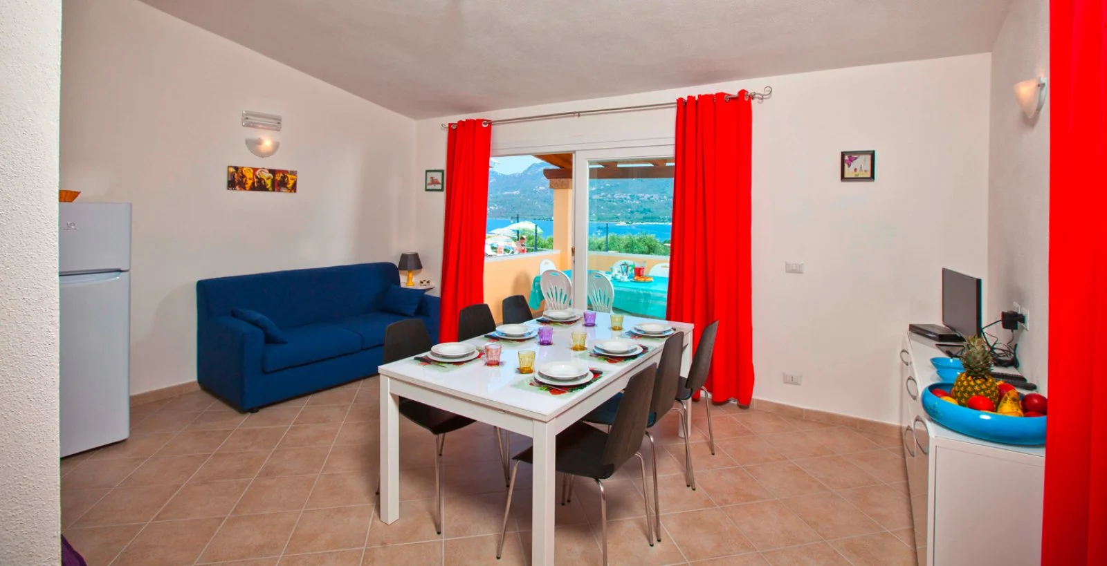 Dotati di Tv sat, aria condizionata, angolo cottura, forno o forno a microonde e frigo, servizi privati con asciugacapelli, asse con ferro da stiro (su richiesta), camere con letti bassi, patio o balcone coperti oppure veranda coperta e giardino, arredati con tavolo e sedie. Si dividono in monolocali 2/3 letti con soggiorno con angolo cottura, letto matrimoniale; bilocale 2 standard con soggiorno con angolo cottura e divano, camera matrimoniale; bilocali 4 letti con soggiorno con angolo cottura, divano letto doppio o matrimoniale, camera matrimoniale, alcuni con vista mare.