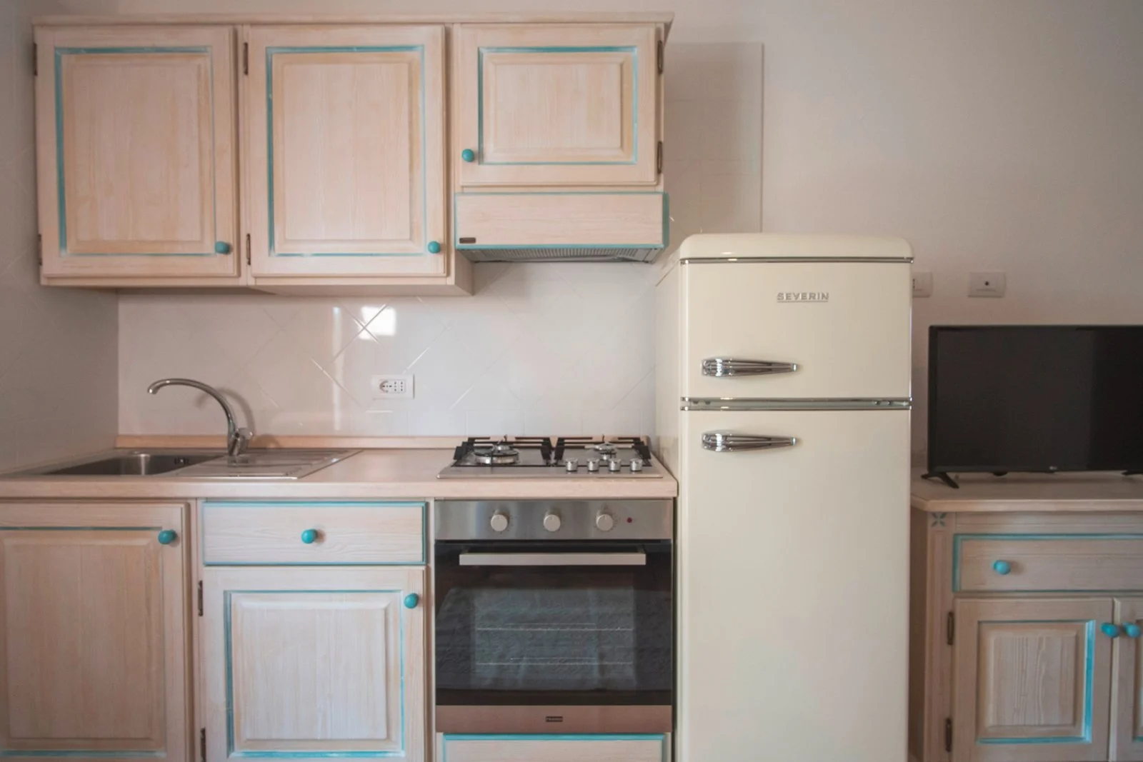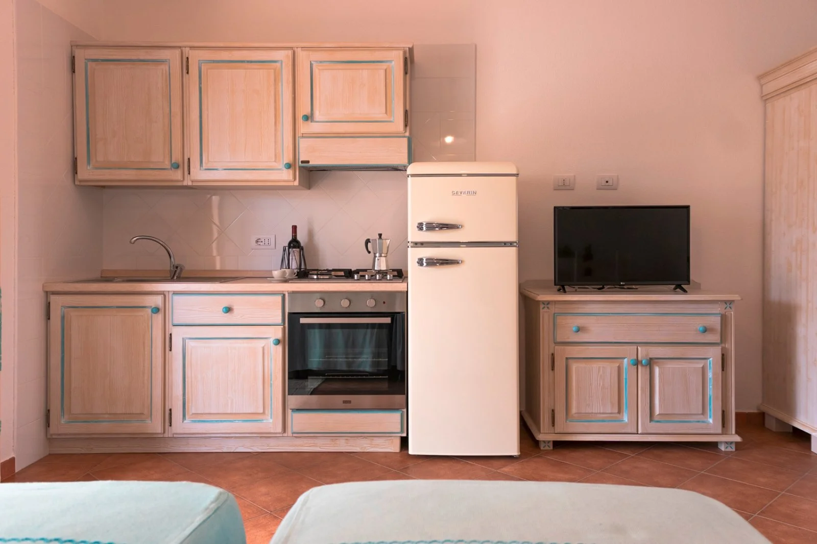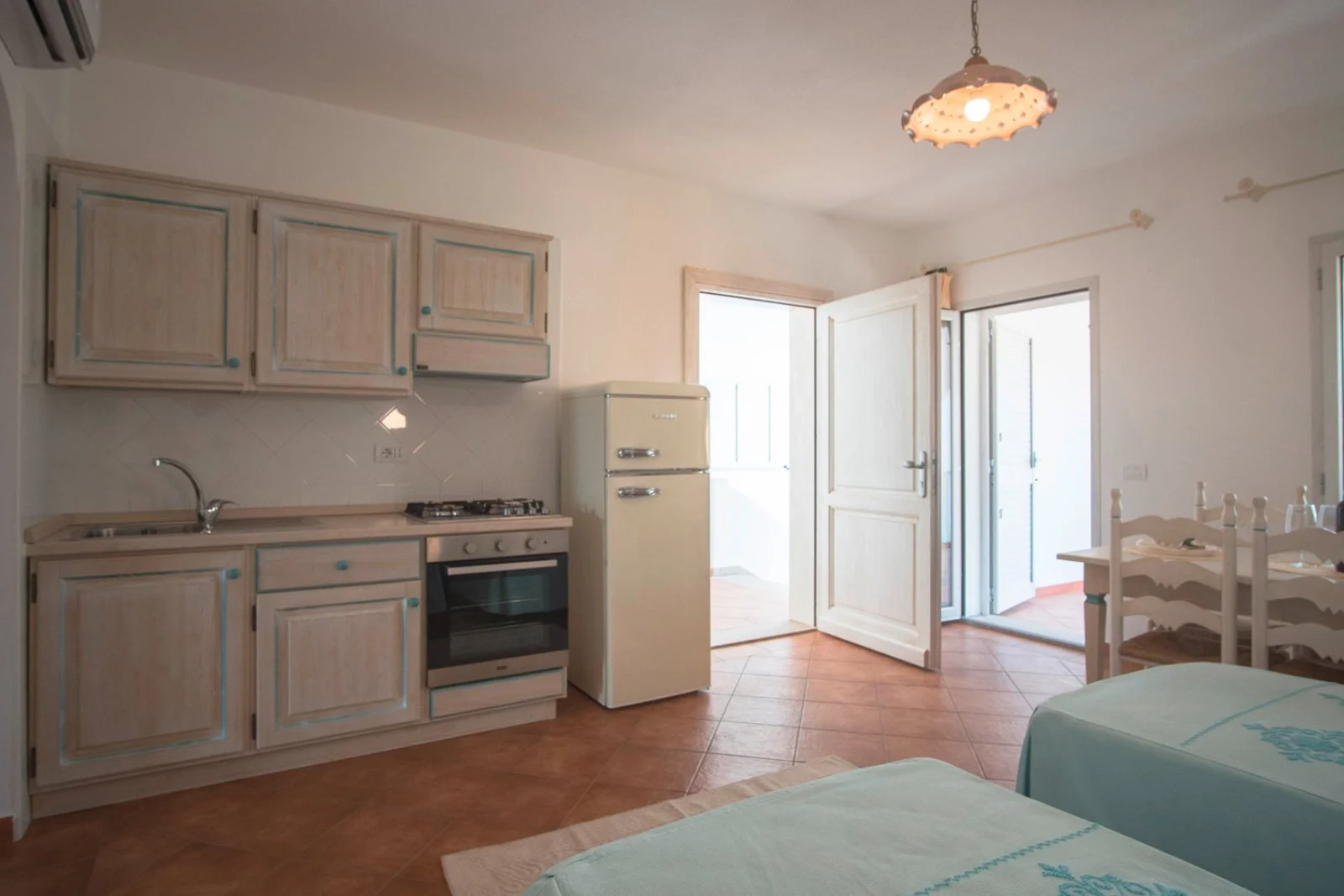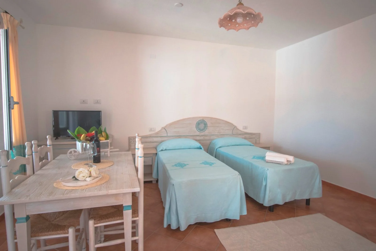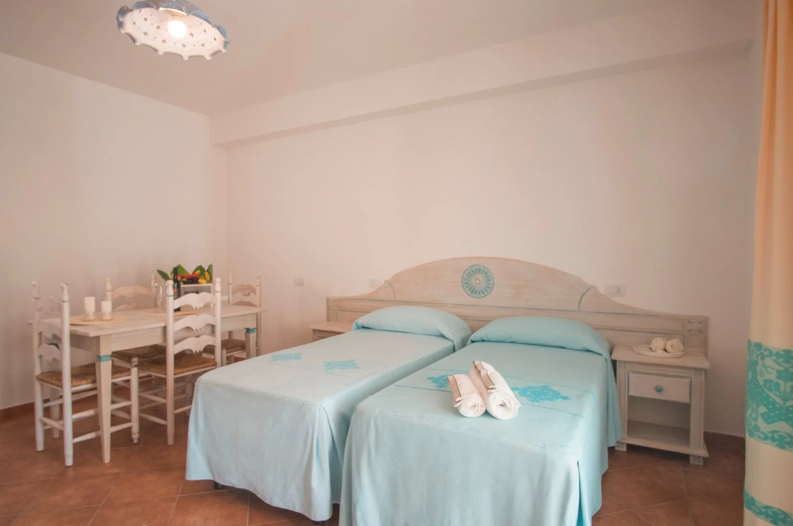 Tutti gli appartamenti sono climatizzati e arredati in tipico stile sardo, disposti su due piani (terra e primo piano) e dispongono di ingresso indipendente con balcone o patio coperto e attrezzato. Sono dotati di angolo cottura attrezzato, servizi privati e asciugacapelli, lavatrice, tv, aria condizionata, wi-fi (ad uso parziale). Si dividono in bilocale 4 e 5 posti letto con soggiorno con 2 letti singoli unibili, camera matrimoniale (letti separabili) e 1 letto singolo.