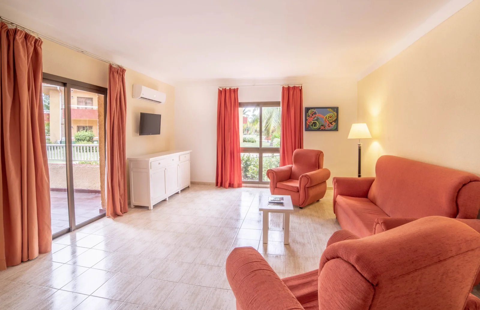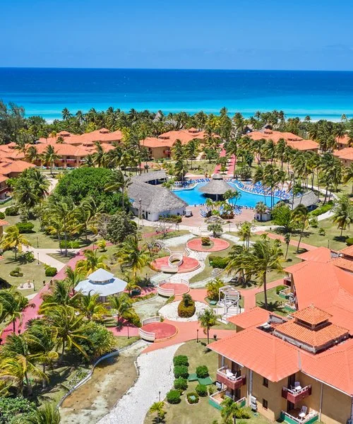 sabbia bianca e soffice e le acque cristalline della spiaggia de Los Tainos. La struttura si compone di villette a due piani con tetti rossi, disposte a ferro di cavallo che circondano le ampie piscine ed emerge con la sua
