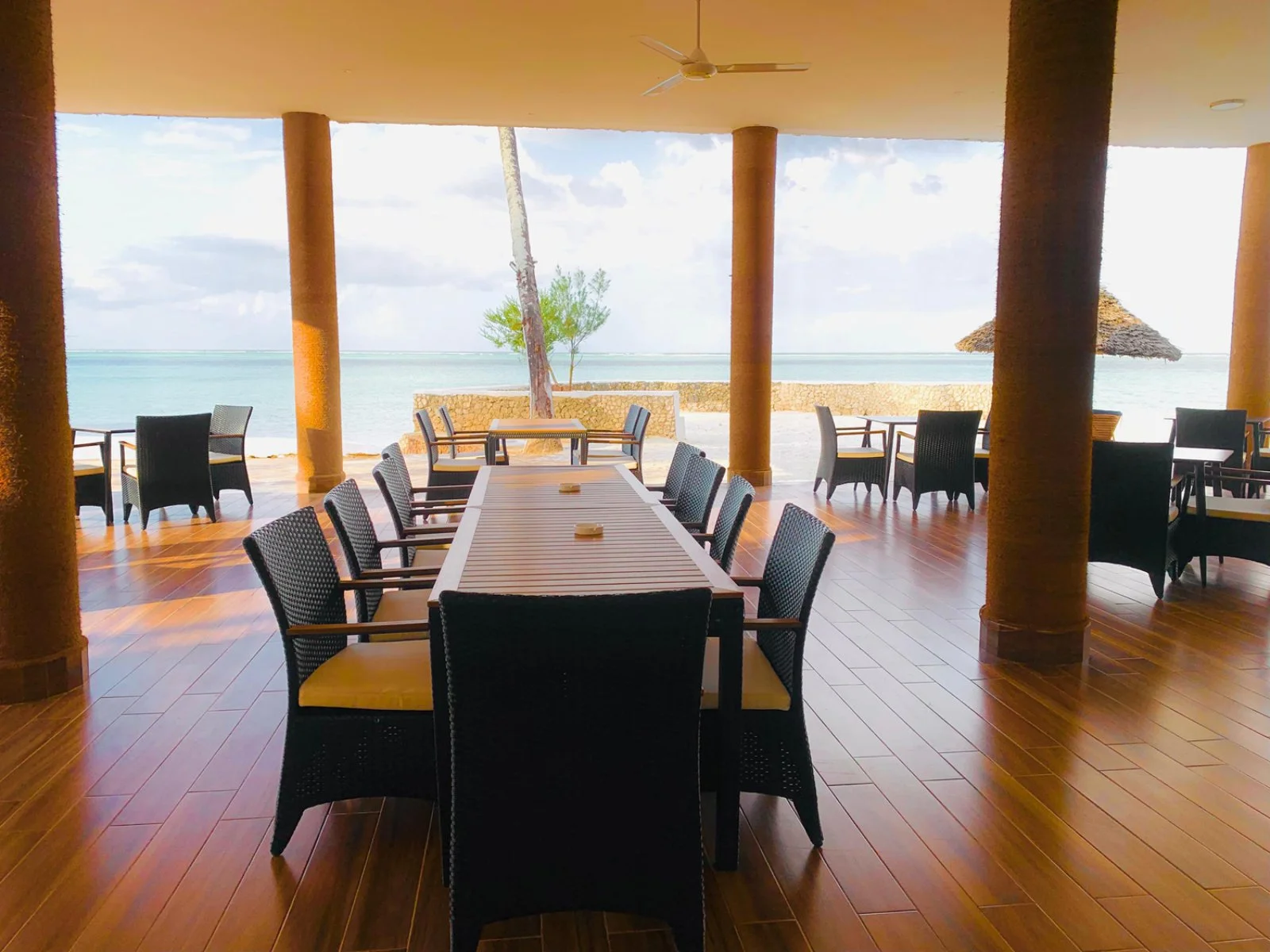 maestosa reception con tetto in makuti regala una vista panoramica sull’oceano. Il resort dispone di