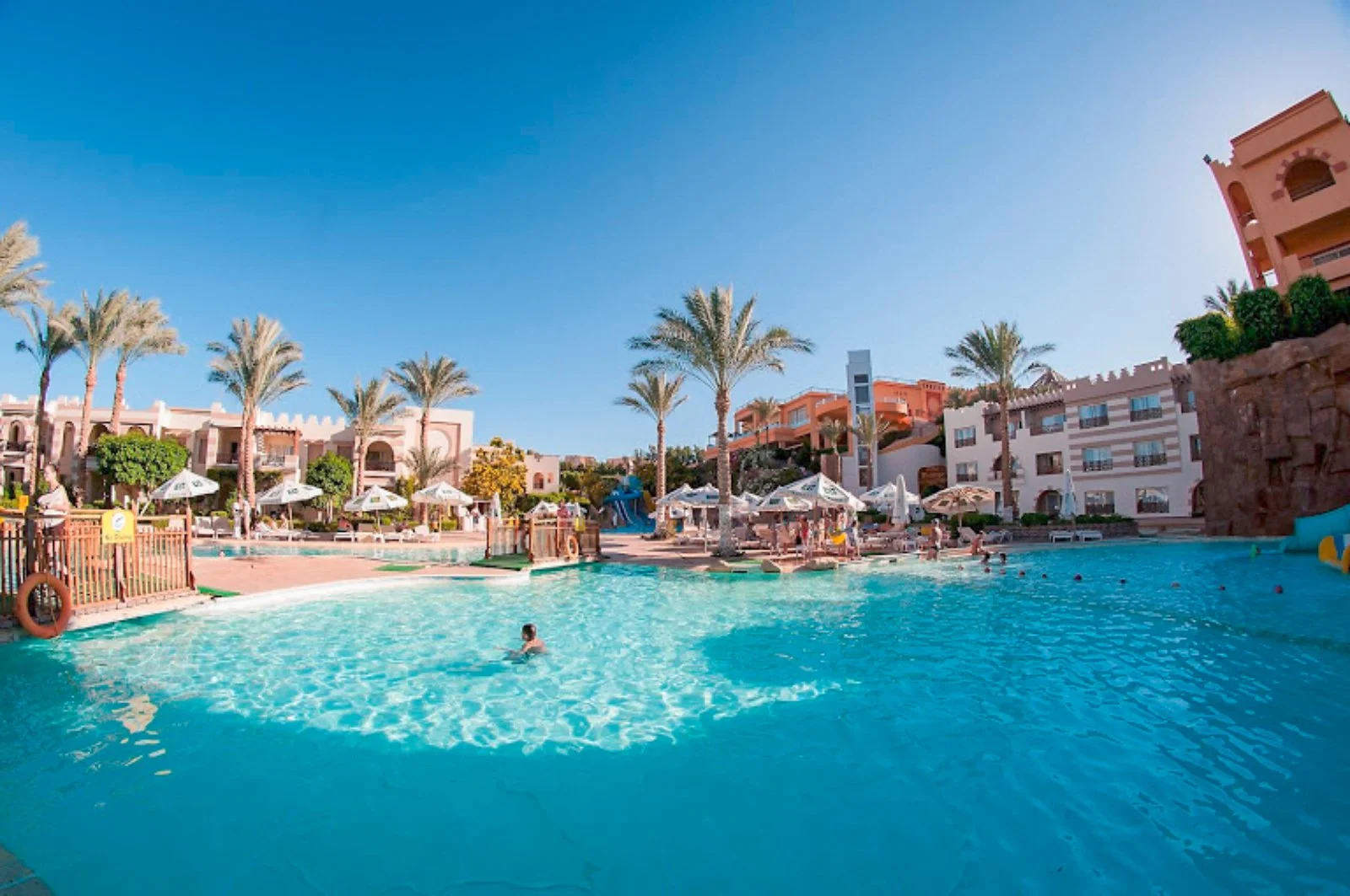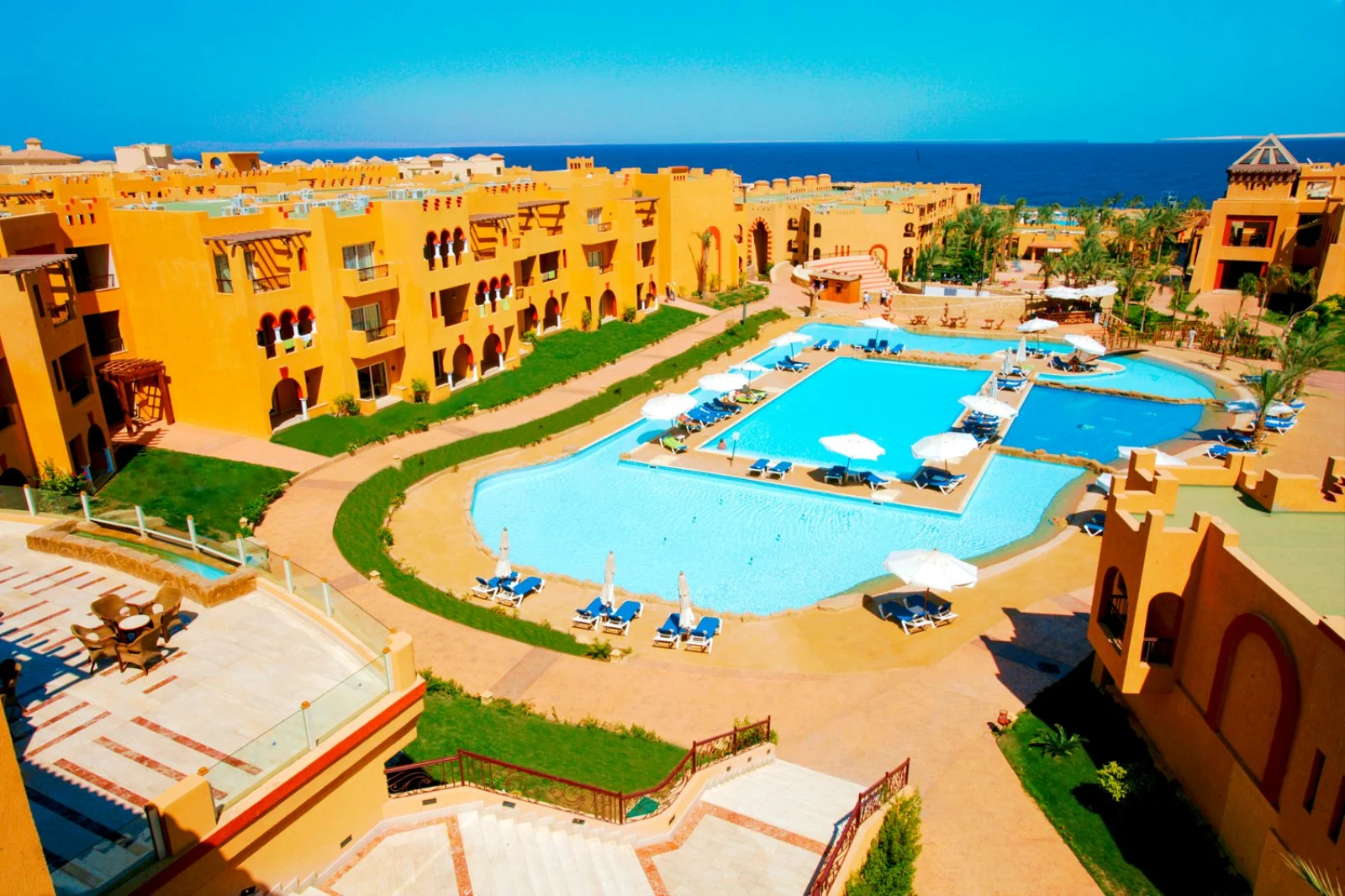 Buon resort internazionale situato nella zona di Nabq, direttamente ubicato sull’ampia e bellissima spiaggia che ha reso famosa questa zona di Sharm el Sheikh. La struttura, concepita in stile egiziano e arabeggiante, presenta una grande varietà di servizi, tra cui ben 13 piscine, un ristorante a buffet e ben 4 ristoranti tematici e una ricchissima formula All Inclusive (attiva 24h su 24).