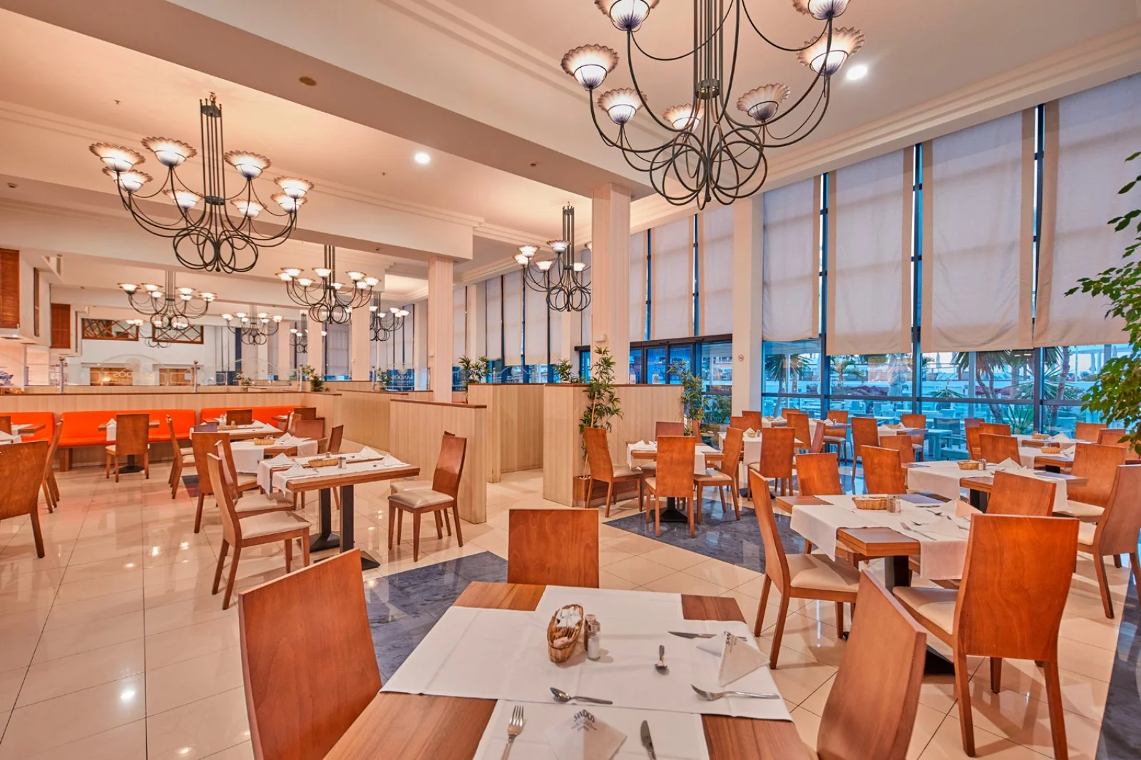 4 ristornati a buffet di cui 1 esclusivo per i clienti di Royal Elite, 1 tematico su prenotazione, 1 di cucina italiana e 1 di cucina internazionale e 5 bar.