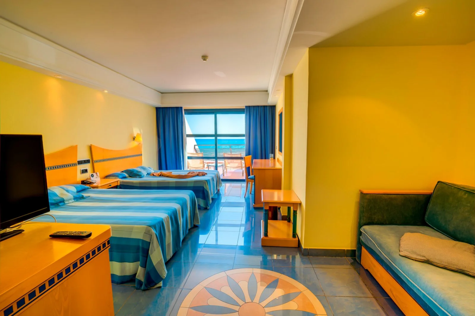 173 camere distribuite su 8 piani, tutte con terrazza o balcone, servizi privati, aria condizionata, TV satellitare, minifrigo. A pagamento, cassetta di sicurezza, connessione wi-fi (gratuita nelle aree comuni). Disponibili con supplemento camere doppie vista mare frontare e camere lato mare, Suite vista mare laterale e Suite Standard dotate in più di zona soggiorno con divano letto e Suite superior vista mare frontale.