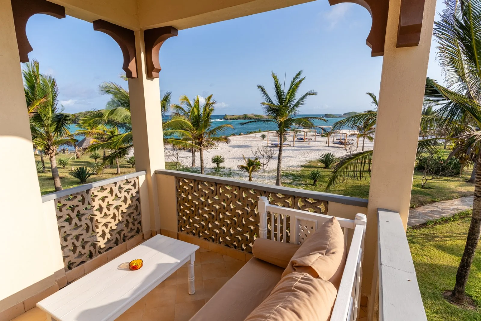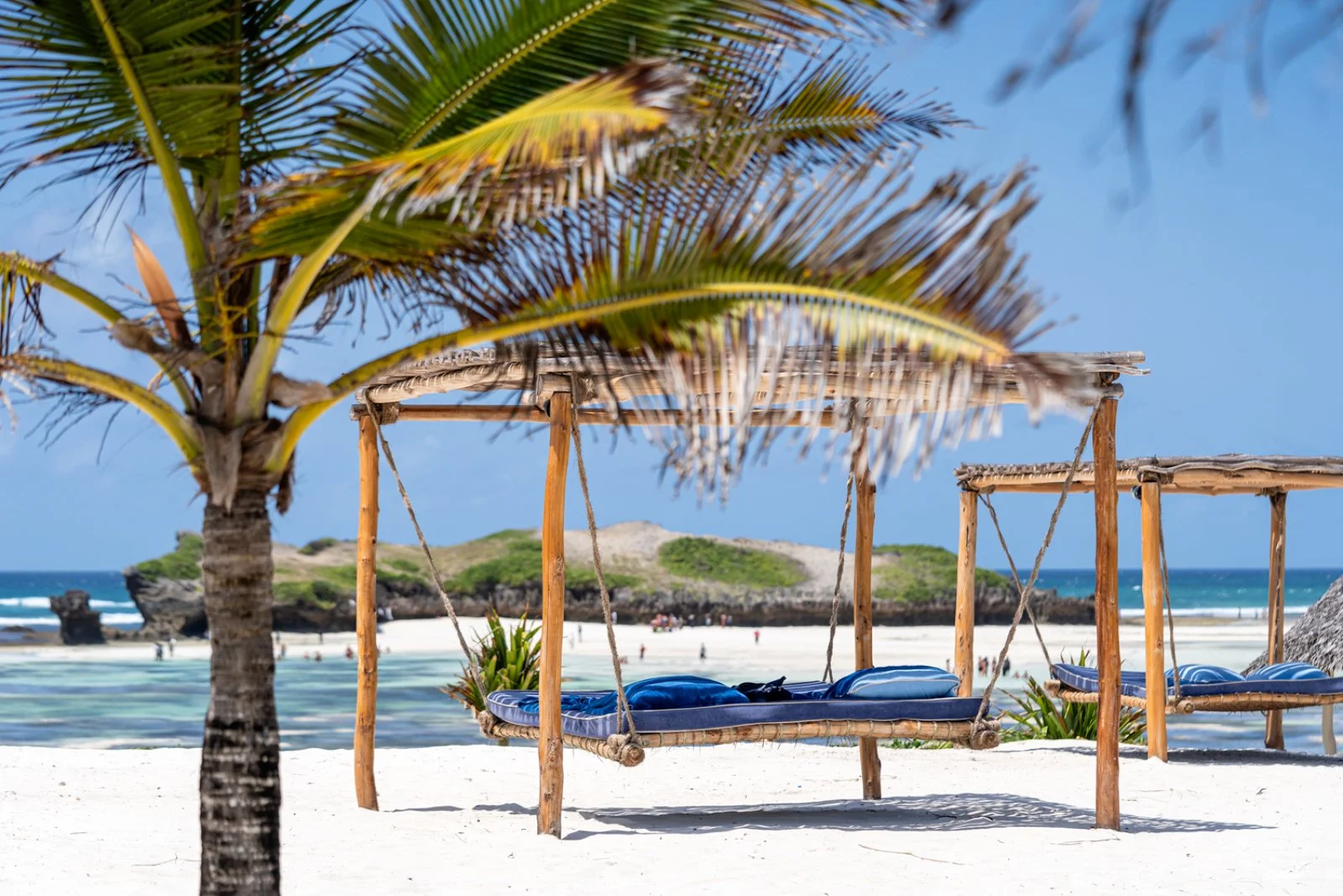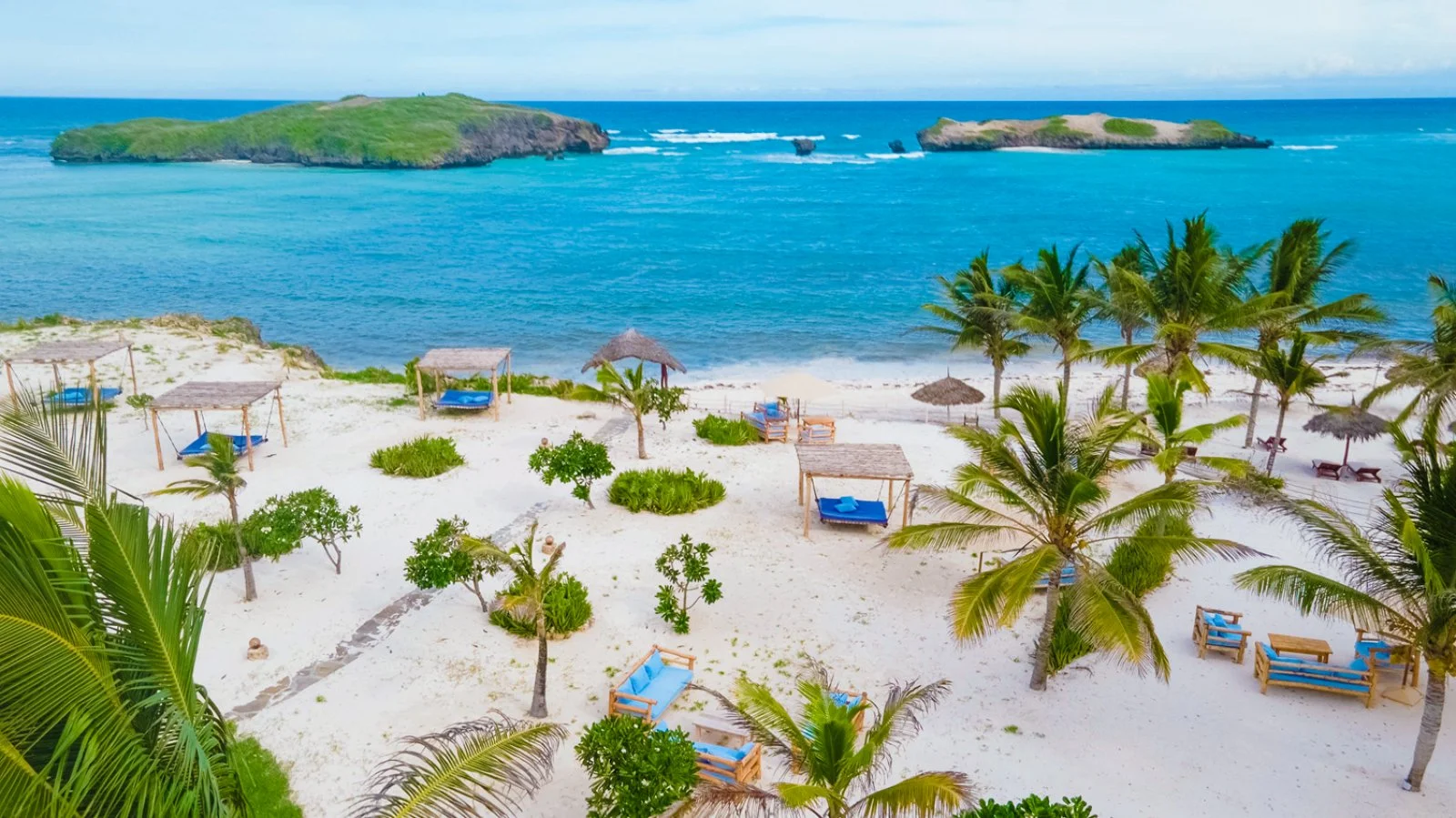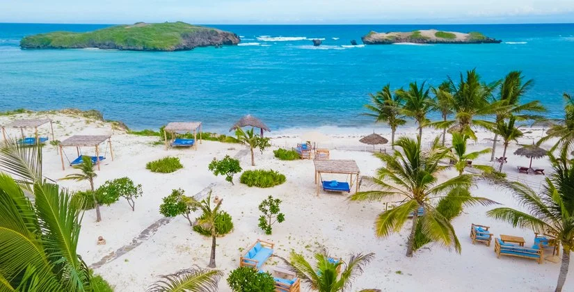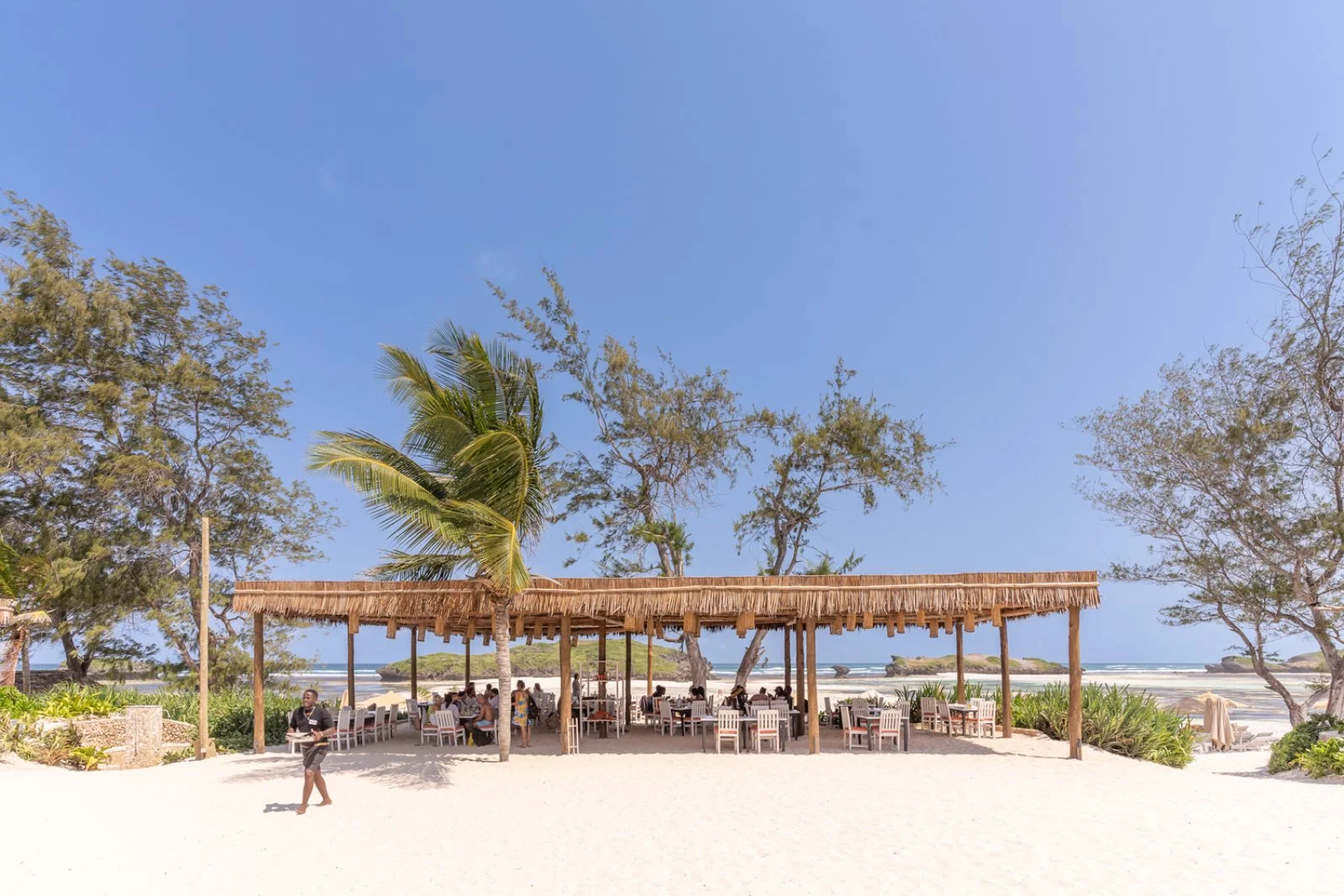 La splendida baia su cui sorge è caratterizzata da un incantevole susseguirsi di oceano, corallo e sabbia bianchissima; magnifici isolotti raggiungibili a piedi nei momenti di bassa marea si frappongono tra il lungo bagnasciuga e l’Oceano Indiano. In diversi appuntamenti quotidiani è possibile assistere a fenomeni di alta e bassa marea; tra la piscina e la spiaggia sono disponibili lettini (quelli situati sul tratto di spiaggia davanti al ristorante Papa Remo sono a pagamento) in zone d’ombra con palme, casuarine e ombrelloni in fibra di palma. Sono inoltre disponibili divani e lettoni sospesi nella nuova area beach front, con oltre 3000 m2 di sabbia bianca e piante autoctone, vista Isole dell’Amore. La struttura sorge all’interno di una riserva naturale protetta e la spiaggia antistante, in alcuni periodi dell’anno, è meta di tartarughe marine che vi si recano per deporre le uova, pertanto il numero di ombrelloni e lettini direttamente in spiaggia è limitato per legge dalle autorità locali di tutela ambientale. Dispone di due piscine di cui una dedicata ai bambini. Ombrelloni e lettini in piscina, teli mare (con tessera).