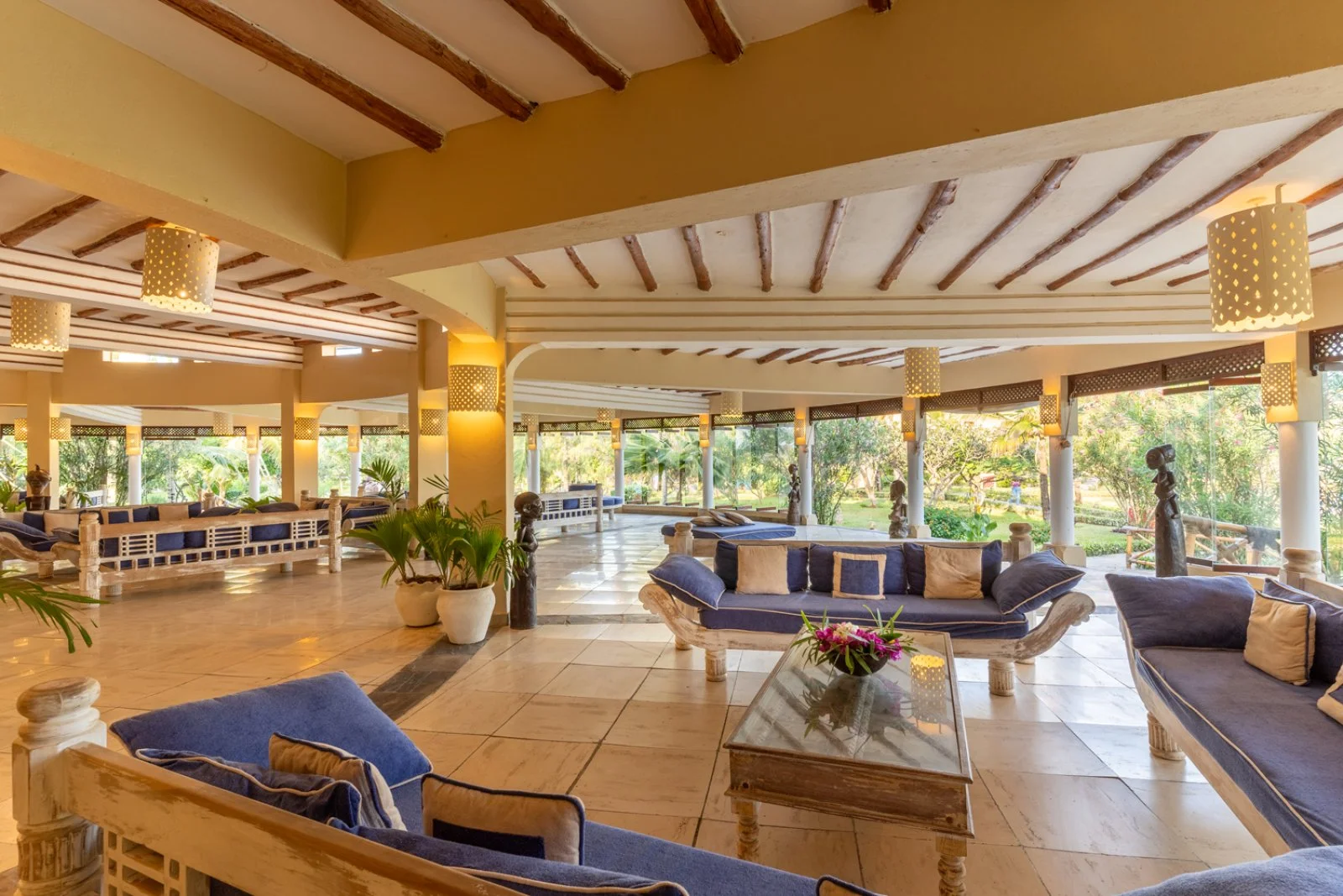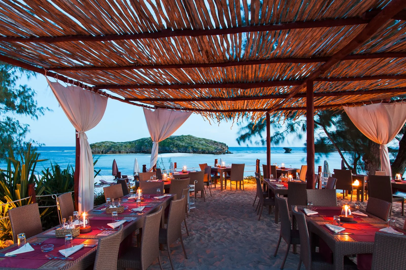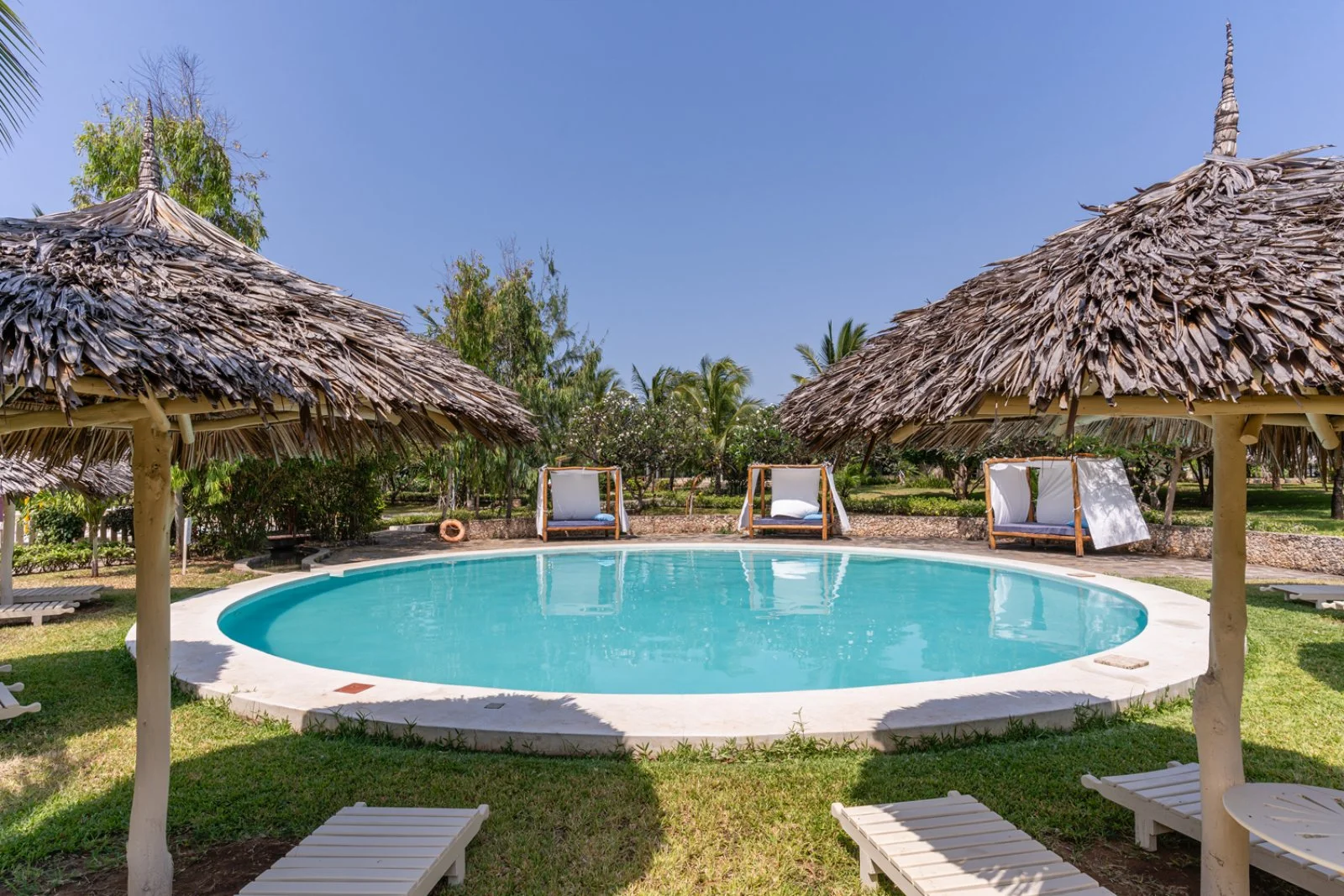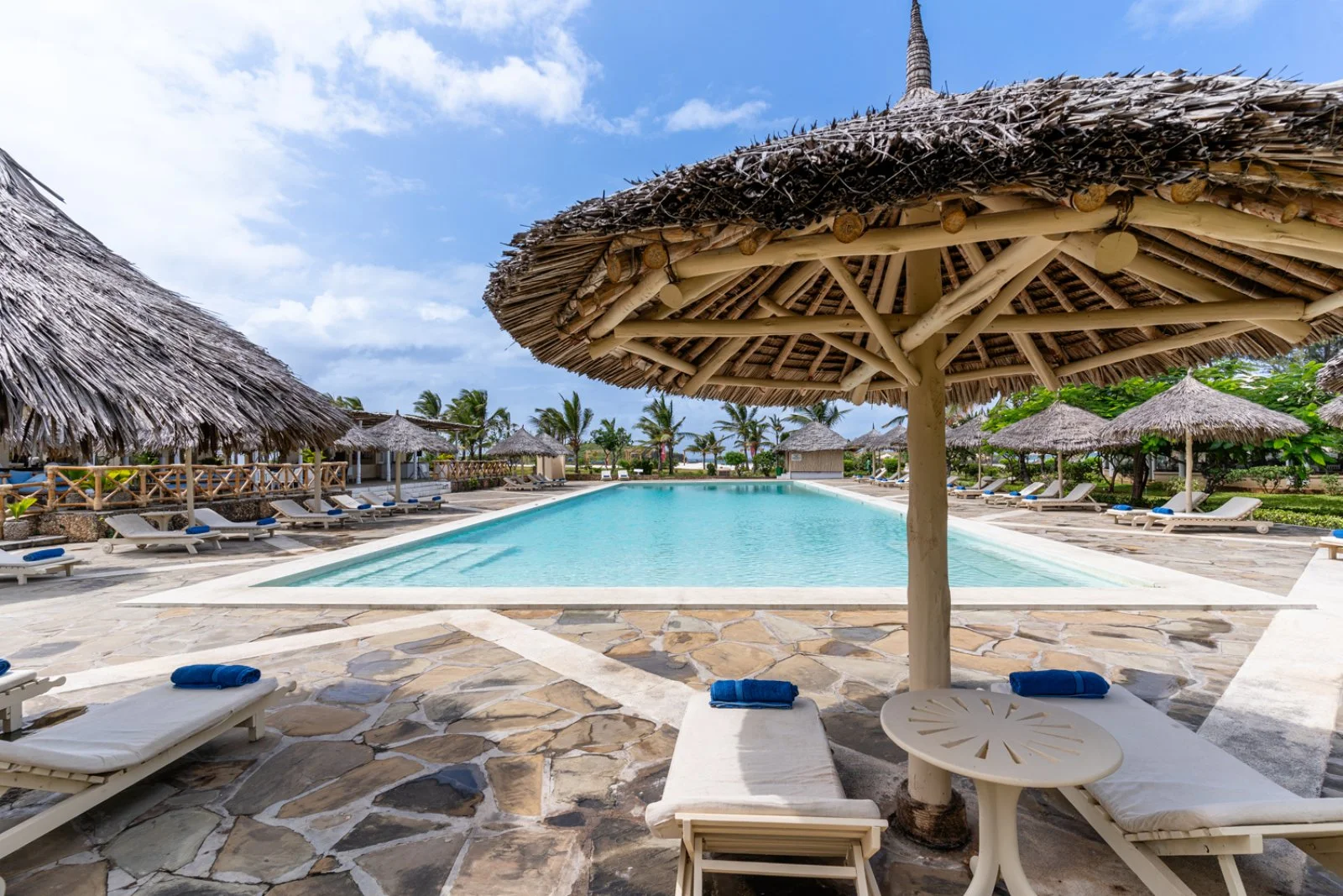 La splendida baia su cui sorge è caratterizzata da un incantevole susseguirsi di oceano, corallo e sabbia bianchissima; magnifici isolotti raggiungibili a piedi nei momenti di bassa marea si frappongono tra il lungo bagnasciuga e l’Oceano Indiano. In diversi appuntamenti quotidiani è possibile assistere a fenomeni di alta e bassa marea; tra la piscina e la spiaggia sono disponibili lettini (quelli situati sul tratto di spiaggia davanti al ristorante Papa Remo sono a pagamento) in zone d’ombra con palme, casuarine e ombrelloni in fibra di palma. Sono inoltre disponibili divani e lettoni sospesi nella nuova area beach front, con oltre 3000 m2 di sabbia bianca e piante autoctone, vista Isole dell’Amore. La struttura sorge all’interno di una riserva naturale protetta e la spiaggia antistante, in alcuni periodi dell’anno, è meta di tartarughe marine che vi si recano per deporre le uova, pertanto il numero di ombrelloni e lettini direttamente in spiaggia è limitato per legge dalle autorità locali di tutela ambientale. Dispone di due piscine di cui una dedicata ai bambini. Ombrelloni e lettini in piscina, teli mare (con tessera).