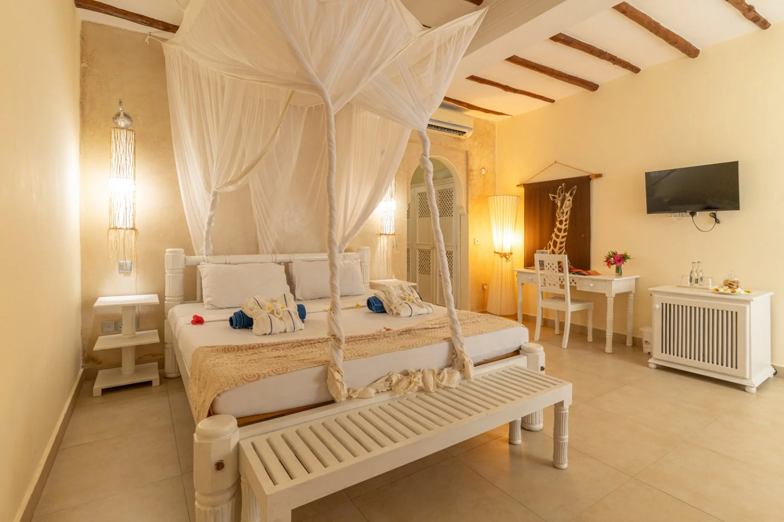 Immerso in un contesto paesaggistico di straordinaria bellezza, il resort è costruito in stile tradizionale. 84 camere in totale, disposte in palazzine con piano terra e primo piano rialzato. Vi sono doppie standard (massima occupazione 3 adulti) e 10 camere family room, di dimensioni più ampie (massima occupazione 4 adulti). Tutte le camere dispongono di servizi privati, asciugacapelli, TV LCD satellitare, aria condizionata, minifrigo, cassetta di sicurezza, zanzariere e balcone. A pagamento: rifornimento e consumazioni minibar. Sono inoltre disponibili sistemazioni in ville (10 totali) che possono ospitare un minimo di 2 adulti (occupazione di soli 2 adulti con supplemento in alcune ville) e un massimo di 9 adulti. Pur facendo parte dello stesso resort, le ville godono di una posizione appartata, immersa nel verde e dotata di una piscina dedicata. Gli ospiti delle ville hanno accesso completo a tutti i servizi del 7 Islands Resort e alla sua spiaggia, nonché a servizi dedicati.