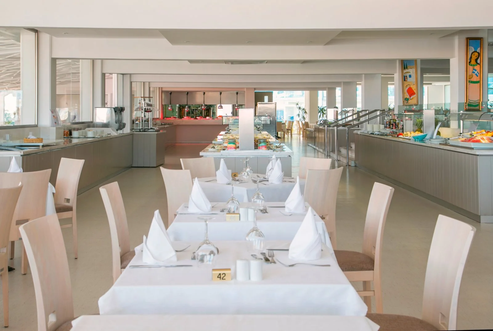 Il moderno ristorante principale ha servizio a buffet, e una zona esterna con tavoli; 2 sono i ristoranti à la carte (a pagamento), il ristorante di pesce (a pagamento) e il pool restaurant. 5 bar tra cui 2 pool bar, il Levels Beach Bar, un cocktail bar e il rooftop il bar panoramico per la sera.