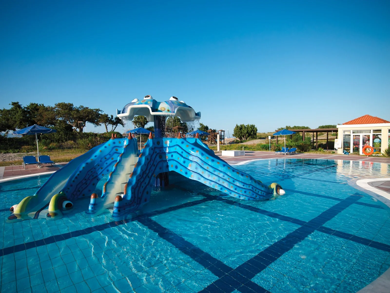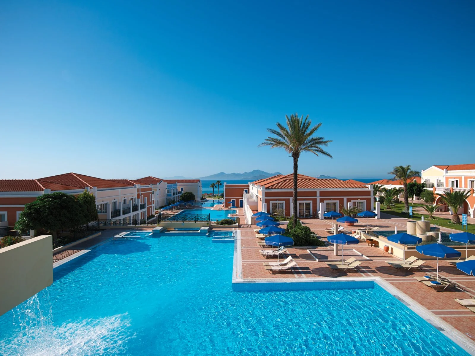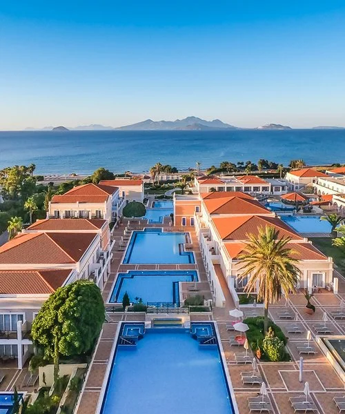 Sorge nel sud dell’isola, a circa 3 km da Kardamena, 9 km dall’aeroporto e 30 km da Kos città. In prima linea sulla bella spiaggia di sabbia e ciottoli che si raggiunge tramite un comodo sottopasso, dispone di ben 14 piscine esterne di acqua salata di cui una per bambini e di una piscina coperta di acqua dolce presso la SPA (over 18 anni). Uso di lettini, ombrelloni e teli mare gratuito in spiaggia e presso le piscine.