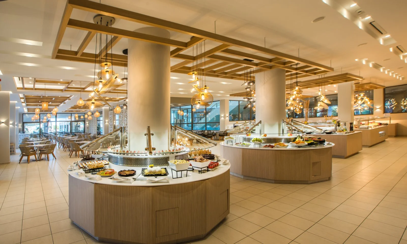 Ricca e varia la formula all inclusive offerta dal resort che permette un’ampia scelta tra i vari ristoranti: ristorante principale Ambrosia con servizio a buffet e show cooking station per prima colazione, pranzo e cena, 4 ristoranti tematici, due a buffet aperti per pranzo, Isalos con specialità greche e Olea con cucina mediterranea, e due con servizio al tavolo per cena, Due Ponti con piatti anche italiani e Burger Project (maggiori dettagli alla Formula SeaClub). Completano l’offerta gelateria, Ammos beach bar, Azure e Thalassa pool bar che servono anche snack, e il lobby bar.