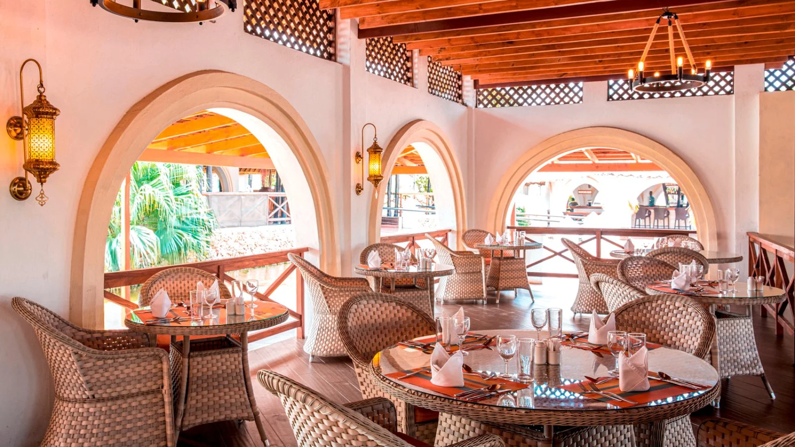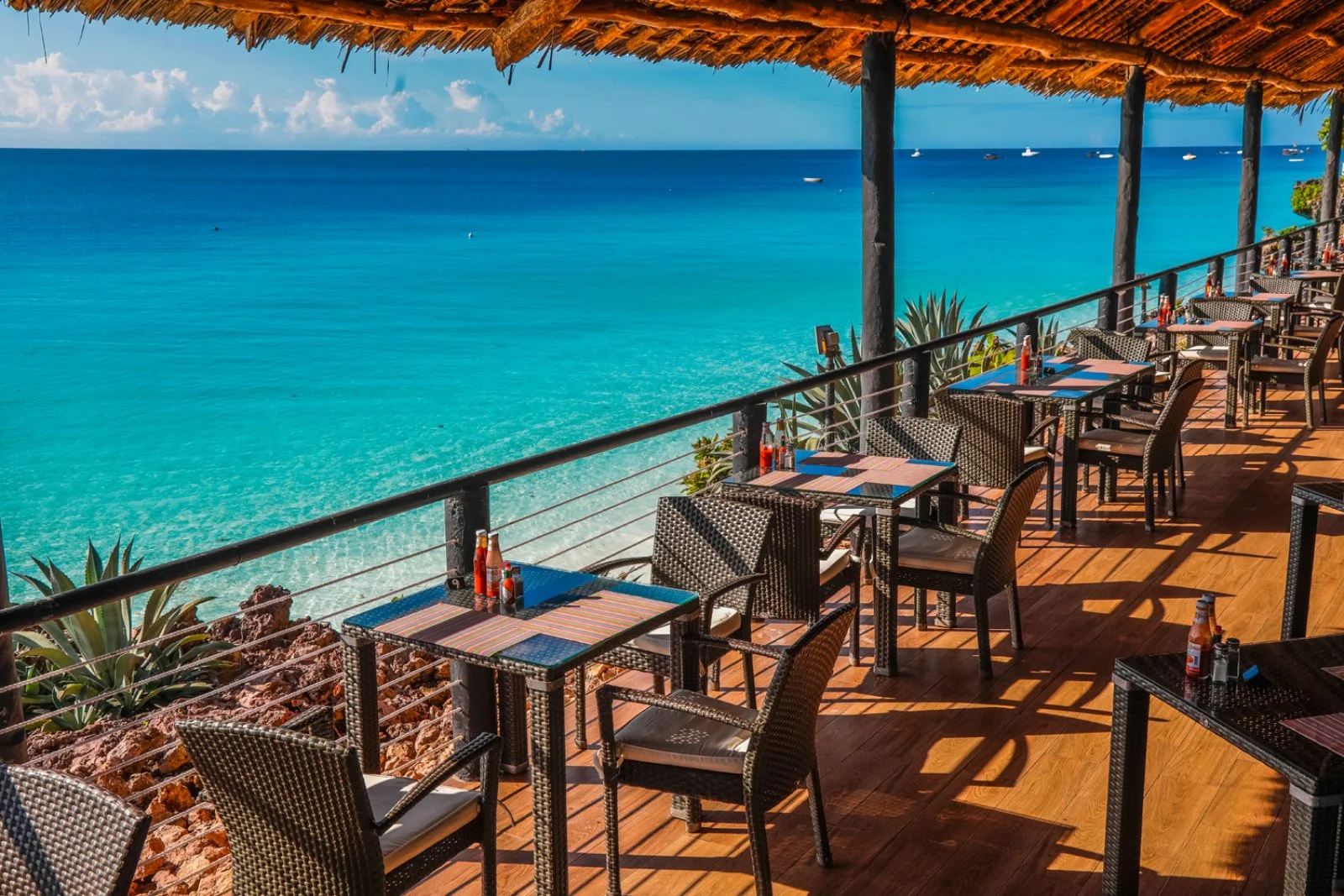 Il ristorante principale, recentemente rinnovato per creare un’atmosfera arabo-swahili, offre un buffet internazionale ed italiano con “angolo pasta”, forno per pizza e grigliate di pesce e di carne preparate al momento (è richiesto un abbigliamento formale per la cena con pantaloni lunghi per gli uomini). Il ristorante The Cliff sorge fronte mare ed è aperto per pranzo con pasti leggeri e per cena. 4 Bar, il principale nel cuore del resort, uno nei pressi del ristorante, uno all'interno dell'ampia piscina centrale ed un bar in spiaggia, per gustare cocktail e bevande durante il giorno.