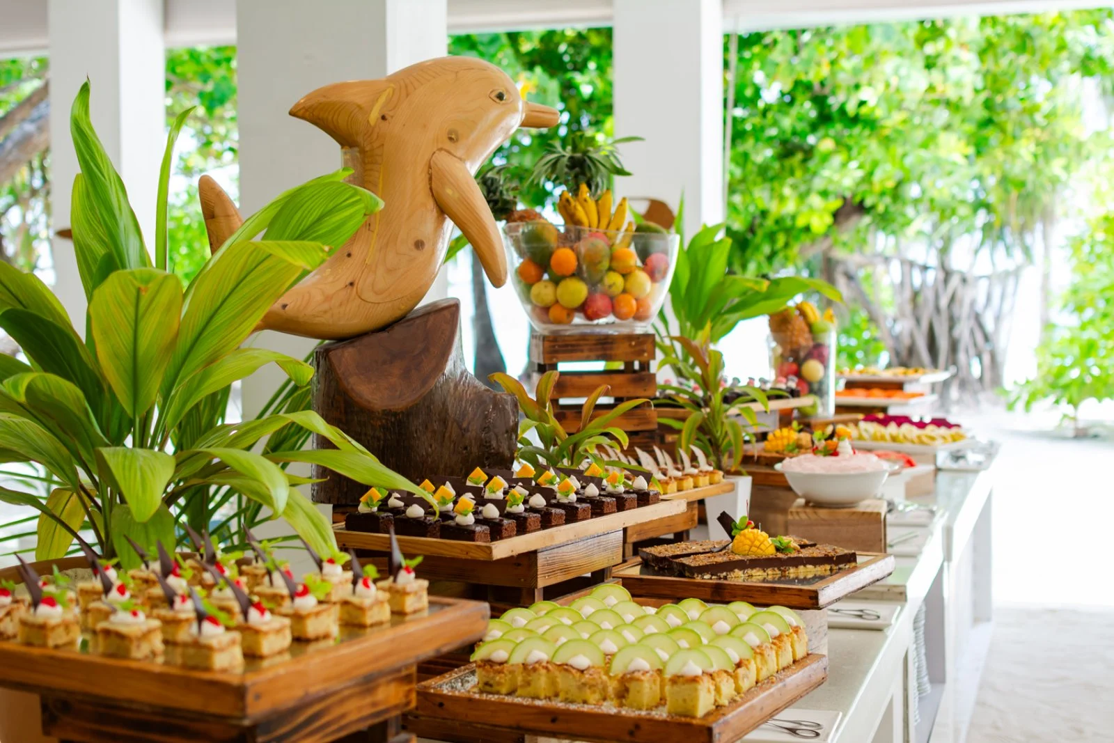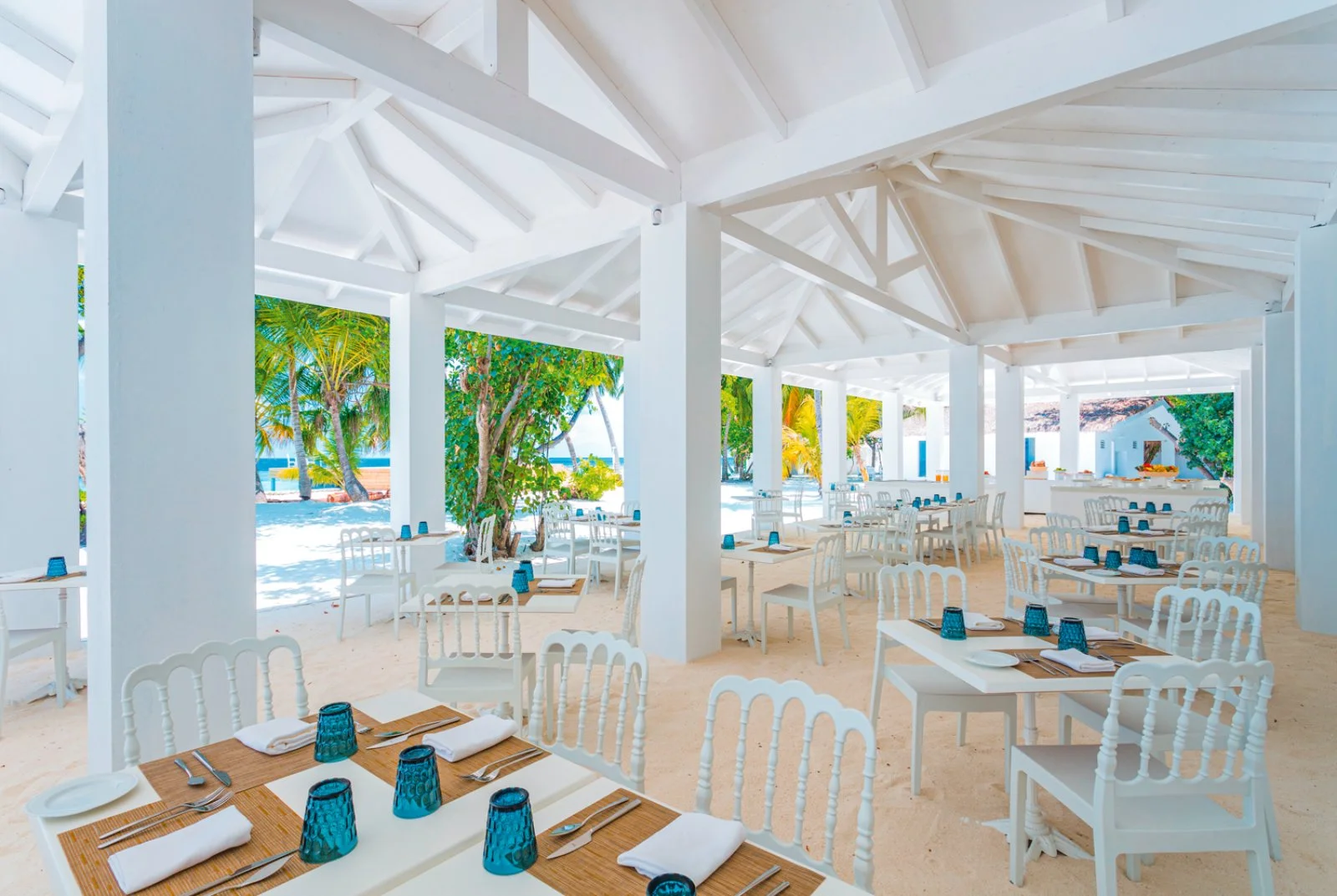 Il ristorante del resort, posizionato sulla spiaggia, prevede servizio a buffet per tutti i pasti e propone specialità mediterranee ed internazionali, pesce alla griglia, show cooking e serate a tema. Un beach bar è inoltre disponibile per gustare un cocktail rinfrescante in riva al mare. A pagamento: cene di pesce à la carte in spiaggia a lume di candela (previa prenotazione).