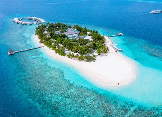 Situato nella parte nordorientale dell’Atollo di Ari, il resort dista circa 65 km dall’aeroporto di Malé. Il trasferimento in barca veloce dura circa 1 ora e mezza a seconda delle condizioni del mare, in idrovolante circa 15 minuti. L’hotel si sviluppa su una piccola isola corallina di 300 per 150 metri, immerso fra palme e vegetazione tropicale, circondato da una magnifica spiaggia. Due comodi pontili consentono di accedere agevolmente al mare aperto oltre il reef. È inoltre disponibile una piscina a sfioro con una magnifica vista panoramica. Lettini e teli mare a disposizione dei clienti.