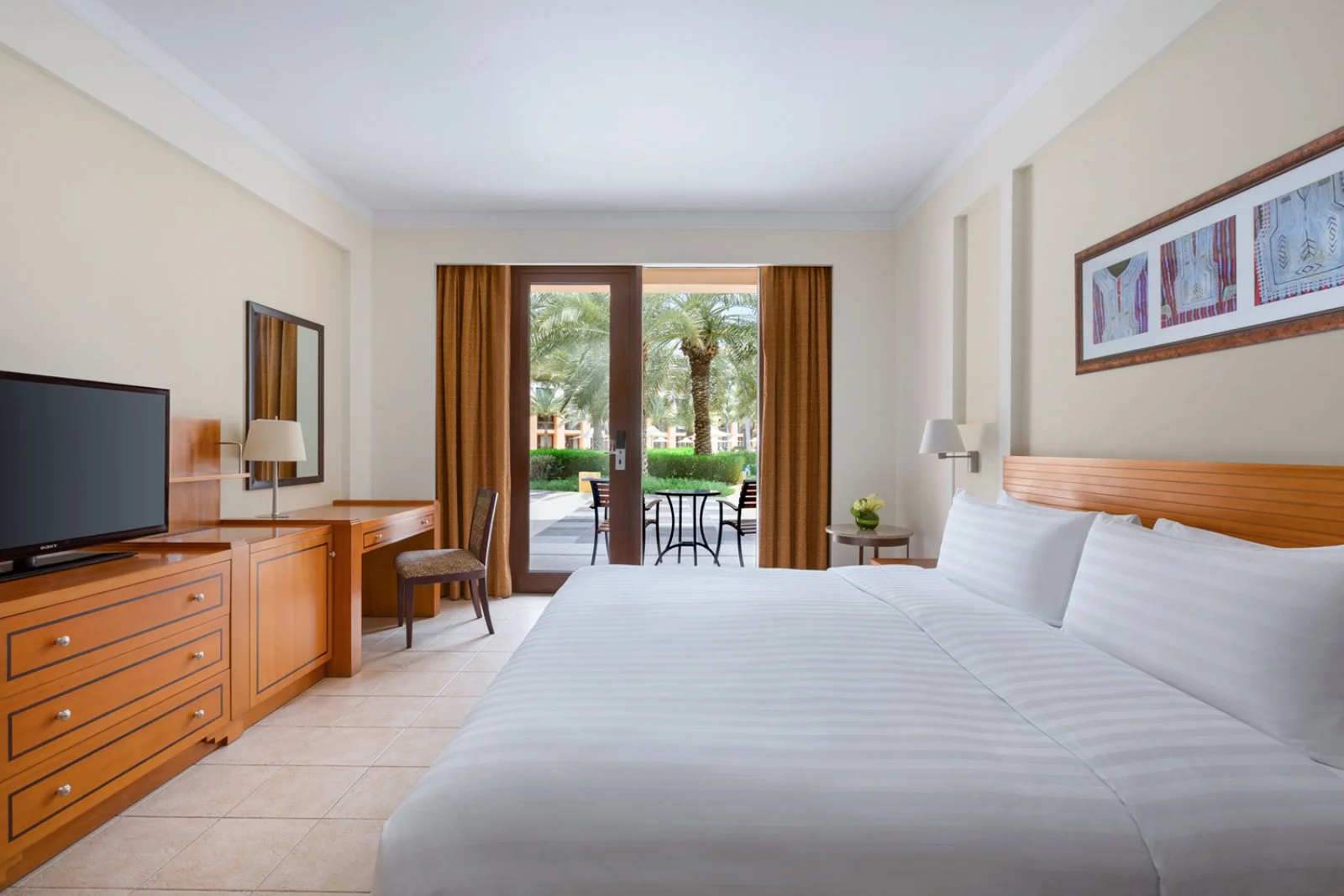 Nel tipico stile architettonico tradizionale, la struttura è composta da 302 camere; le camere guest che si suddividono in king e twin offrono splendide viste sul lussureggiante giardino e, con supplemento, sono disponibili le guest vista mare. Per le famiglie sono disponibili le camere family connecting che sono composte da due camere, una con letto matrimoniale e l’altra con due letti (massima occupazione 3 adulti e 2 bambini o 4 adulti). Tutte le camere sono dotate di balcone privato o patio, aria condizionata, asciugacapelli, cassetta di sicurezza, asse e ferro da stiro, TV satellitare, accappatoio, ciabattine, set per il tè e caffè e rifornimento giornaliero di 4 bottigliette d'acqua. A pagamento: minibar, servizio in camera h24.