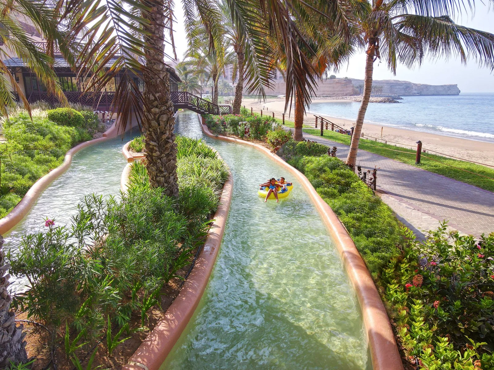 A circa 40 minuti dall’aeroporto di Muscat sorge il DoubleTree by Hilton Muscat Al Waha, che dista solo 15 minuti dall’affascinante souk della capitale. Fa parte del complesso Barr Al Jissah, composto di tre resort in prima linea sulla spiaggia di sabbia, attrezzata di lettini e ombrelloni, con numerose piscine, lazy river e giochi d’acqua.