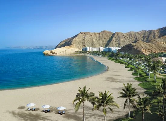 Connesione Wi-Fi, 500 m di Lazy river, una delle attrazioni più amate dai bambini di tutte le età, 6.000 m2 di piscine, miniclub, palestra, minigolf, beach volley, 4 campi da tennis (palline e racchette gratuite), uscite di snorkeling guidato, servizio navetta gratuito per l’area di downtown Muscat ed il Muttrah Souq. A pagamento: clinica, servizio lavanderia, diving center che offre certificazioni SSI, sci d’acqua, kayaking, esclusiva Chi, The Spa con 10 sale trattamento, sauna e idromassaggio, Omani Village con diverse boutique dove è possibile acquistare souvenir della tradizione omanita, sale conferenze con capacità fino a 850 persone. Degno di nota il centro di conservazione delle tartarughe marine con staff dedicato all’importante progetto di cura delle tartarughe che mira a proteggere le specie in via di estinzione originarie della spiaggia; ogni anno, tra febbraio e settembre, si può assistere allo spettacolo della natura della riproduzione delle tartarughe, assistiti dal personale dedicato che garantisce la sicurezza dei nidi e dei piccoli e che quotidianamente organizza dei momenti di formazione e sensibilizzazione sul tema per ospiti di tutte le età.