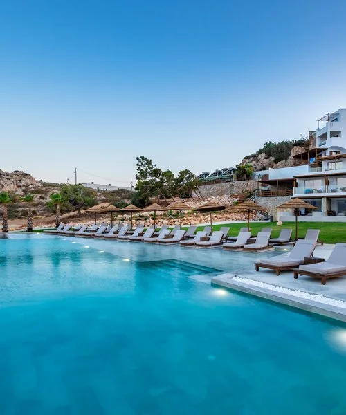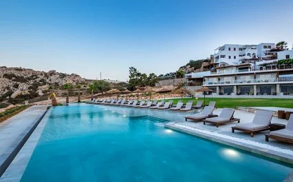 Affacciato sulla meravigliosa insenatura di Amoopi, tra piccole baie e spiagge riparate dal mare cristallino. La sua posizione privilegiata, sul pendio di una collina, ti regalerà panorami incantevoli. Composto da piccoli edifici digradanti verso il mare, di recente si è arricchito di un'area dall’atmosfera moderna ed elegante con una suggestiva piscina a sfioro, ed è caratterizzato da una gestione familiare che fa della professionalità e dell’ospitalità i suoi punti di forza.